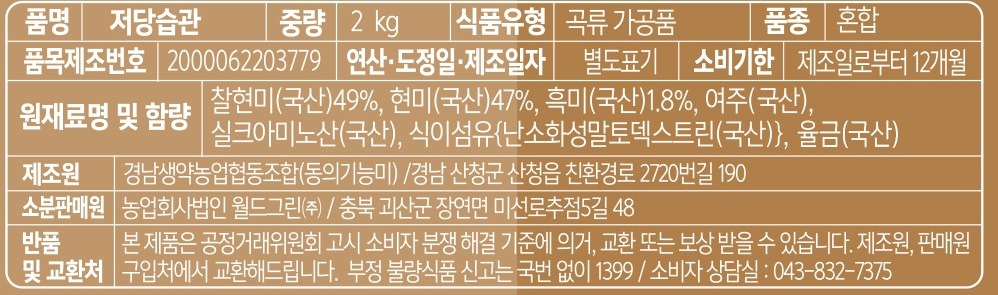| 제품명 | 저당습관 | 식품의 유형 | 컨텐츠 참조 |