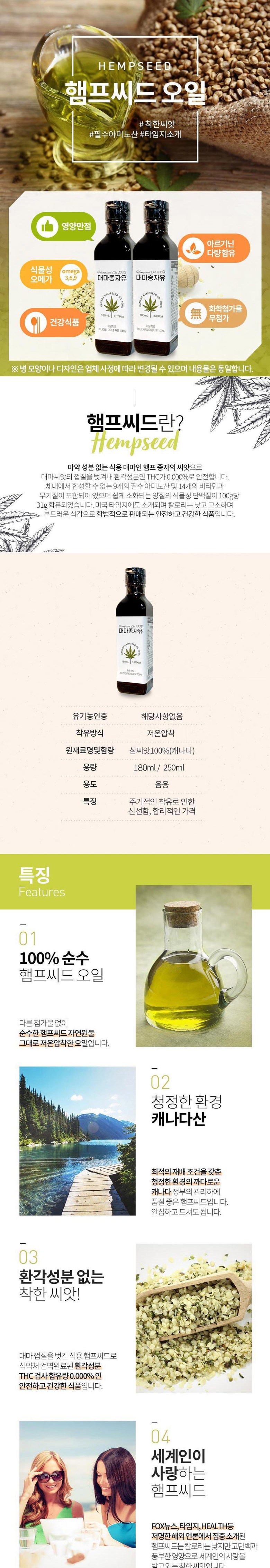 | 포장단위별 내용물의 용량(중량), 수량 | 상세설명참고 | 원재료명 및 함량 | 캐나다 햄프씨드 100% |