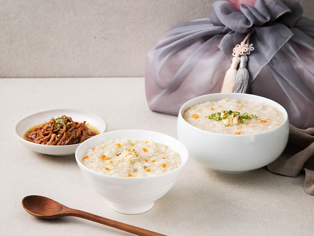 누룽지닭죽, 삼계죽, 쇠고기 장조림으로 구성되어 있습니다.
