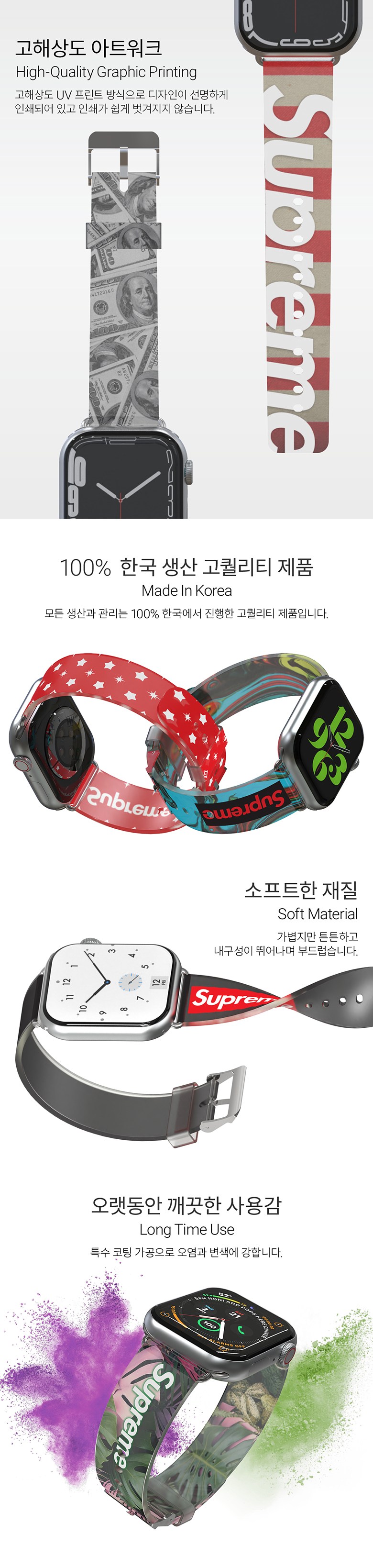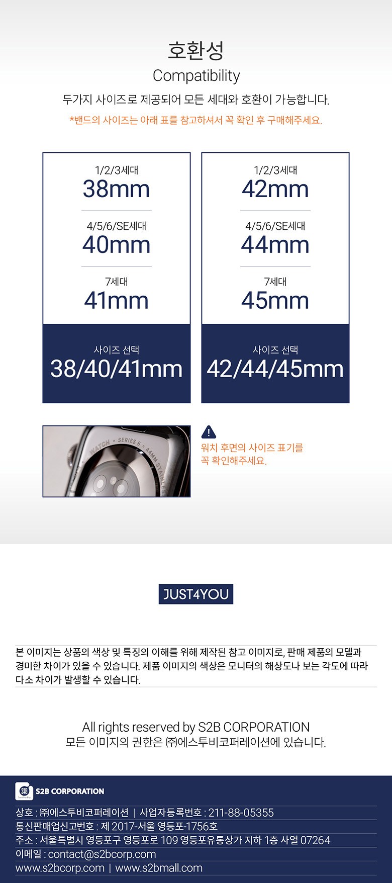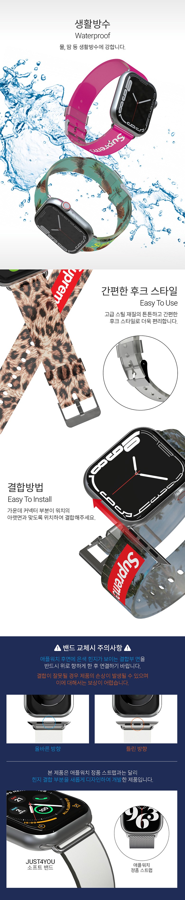 | 품명 및 모델명 | 저스트포유 슈프림 애플워치 소프트 밴드 (38/40/41mm) | 인증/허가 사항 | 해당없음 |