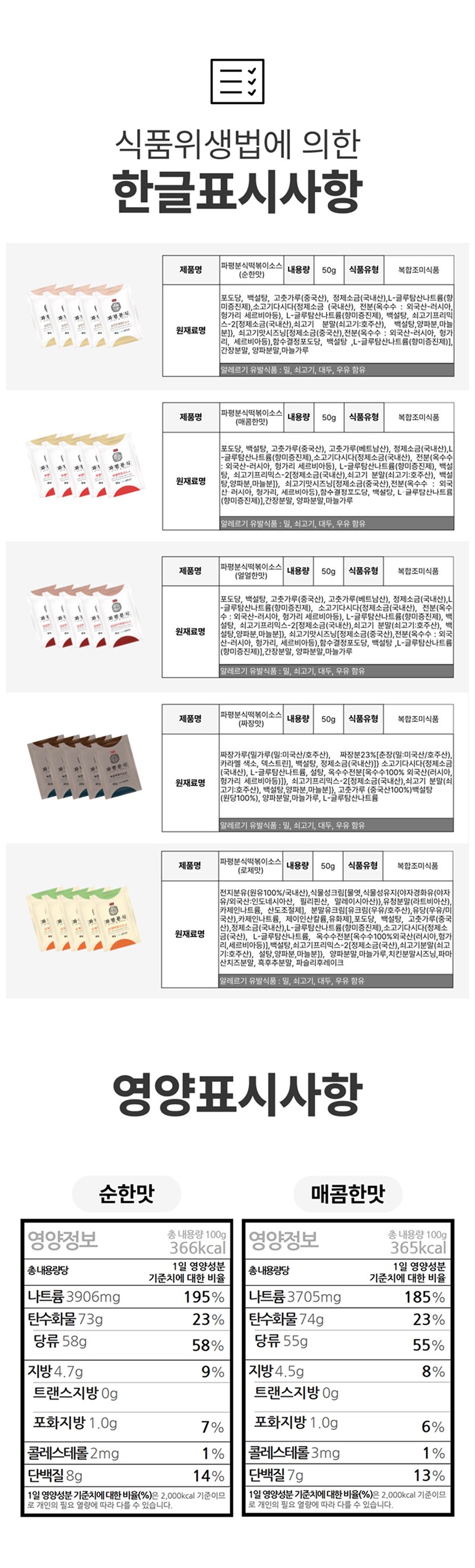 | 포장단위별 내용물의 용량(중량), 수량 | 50g, 30개 | 원재료명 및 함량 | 컨텐츠 참조 |