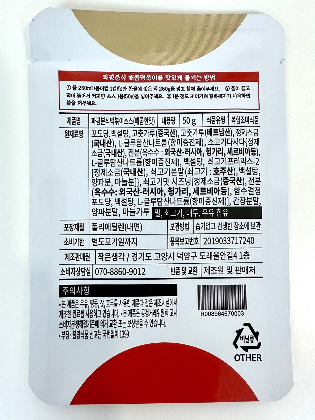 | 제품명 | 파평분식 떡볶이소스 가루 (매콤한맛) | 식품의 유형 | 복합조미식품 |