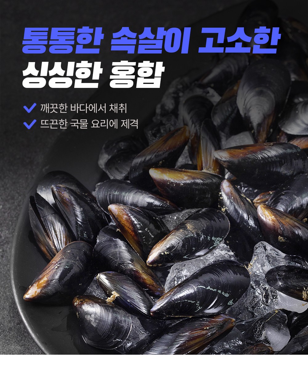 쫄깃한 식감과 담백한 감칠맛이 좋은 홍합이에요. 오동통한 속살을 입에 넣으면 바다의 풍미가 가득 퍼지죠. 홍합탕이나 짬뽕 등에서는 얼큰하고 칼칼하게, 찜 등에서는 담백하고 짭짤하게 변신해 먹는 즐거움을 안겨준답니다.