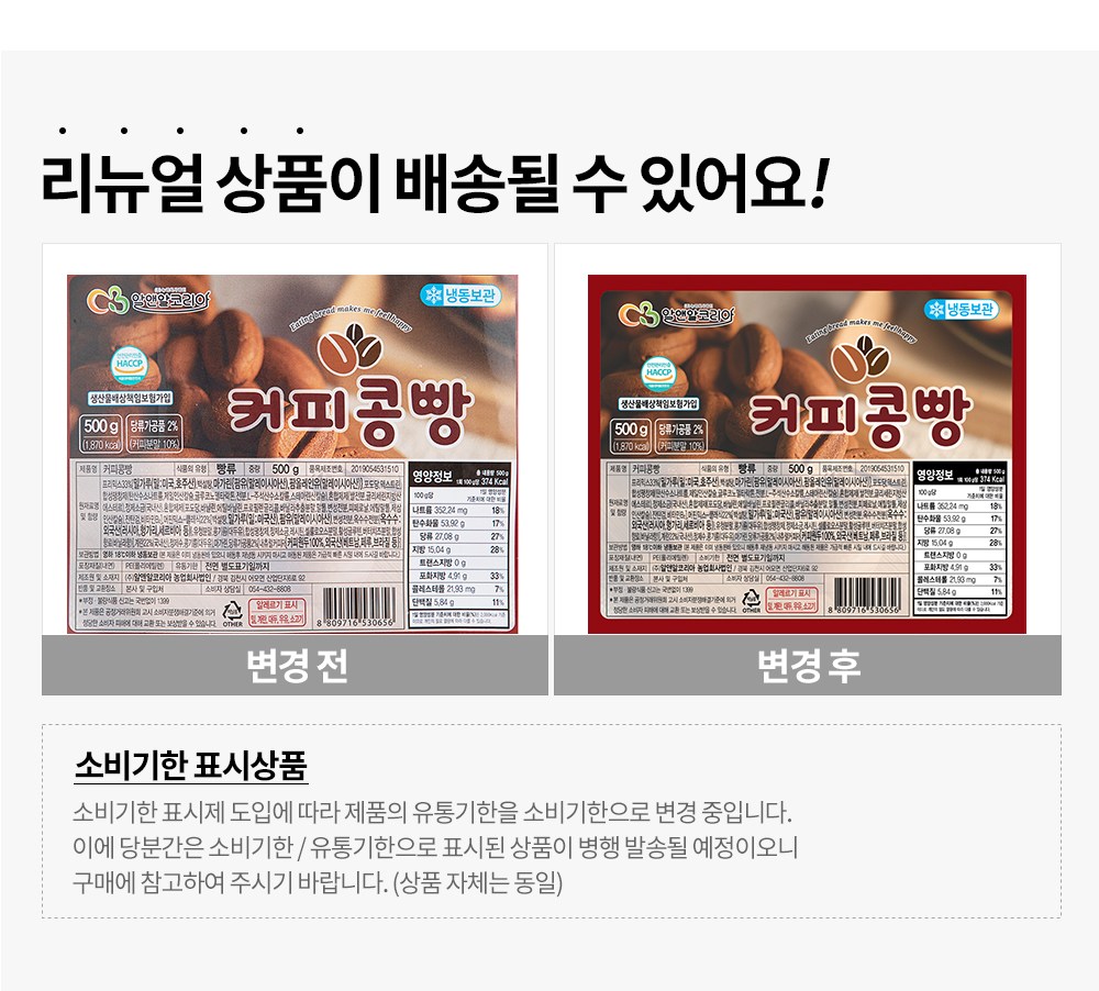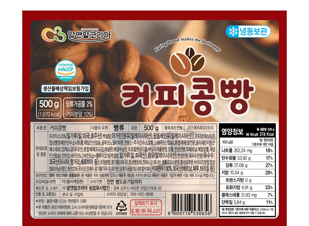 | 제품명 | 커피콩빵 | 식품의 유형 | 컨텐츠참조 |