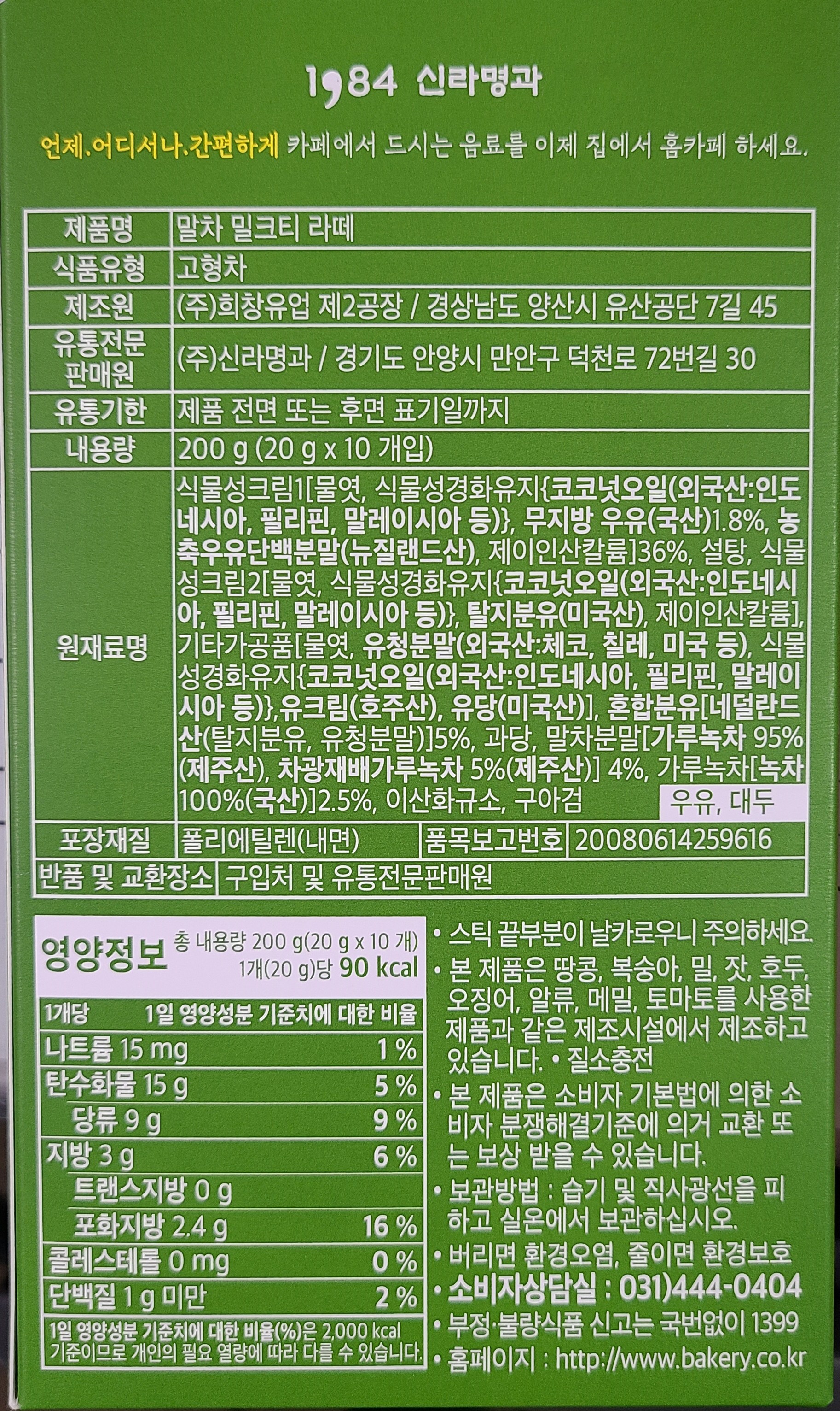 | 제품명 | 말차 밀크티 라떼 | 식품의 유형 | 고형차 |
