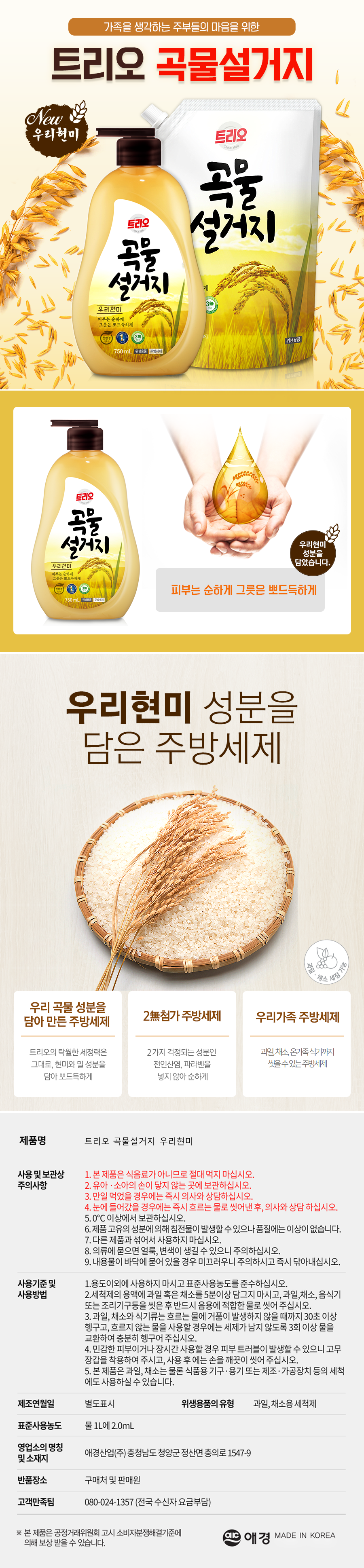 | 품명 및 모델명 | 트리오 곡물설거지 우리 현미 | 인증/허가 사항 | 위생용품 |