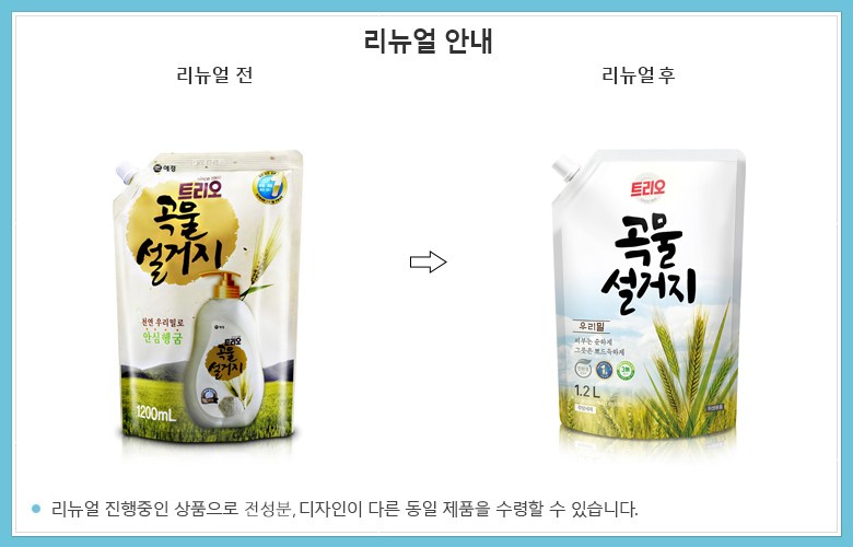 | 품명 및 모델명 | 트리오 곡물설거지 우리밀 주방세제 | 인증/허가 사항 | 위생용품 |
