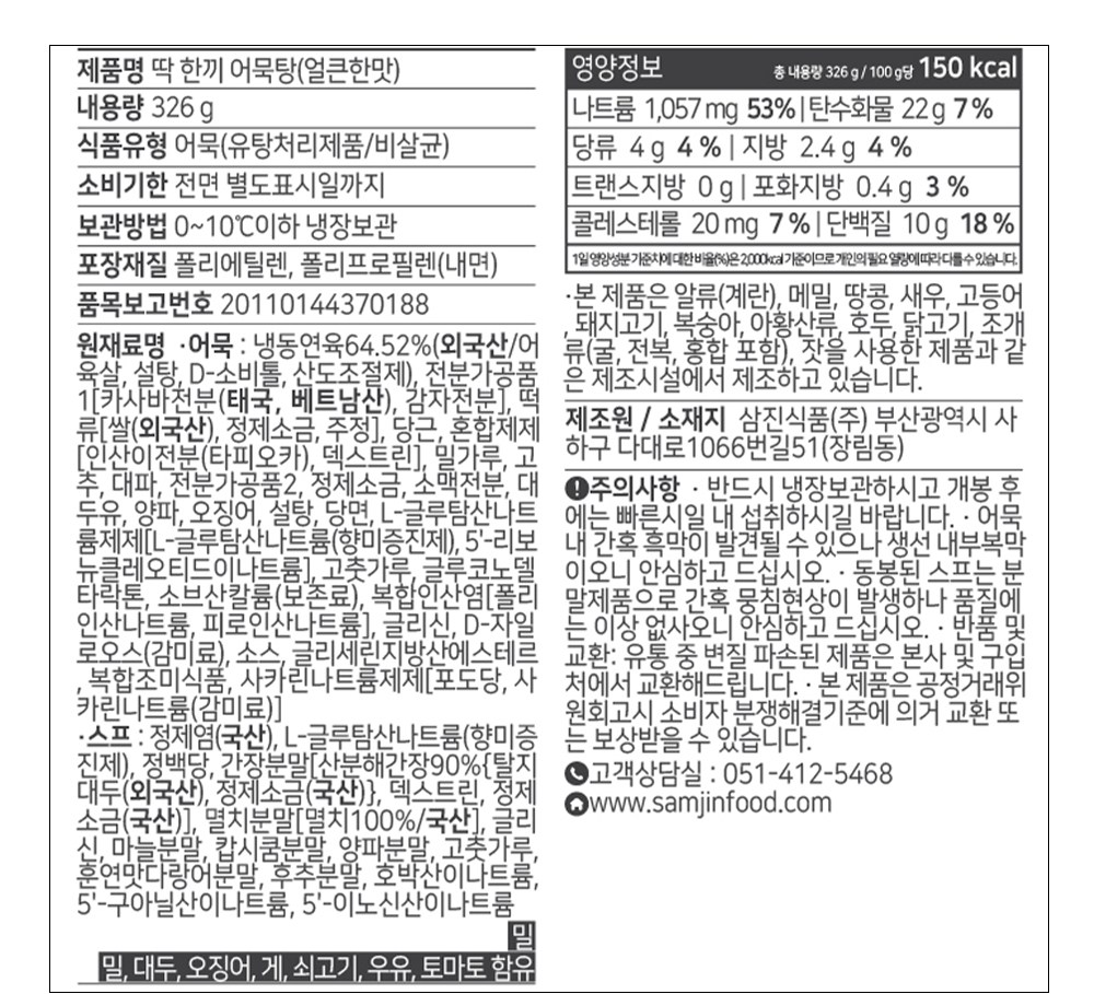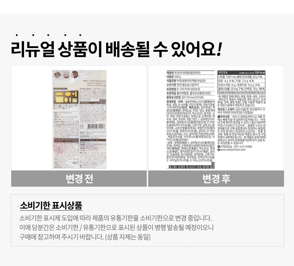 | 포장단위별 내용물의 용량(중량), 수량 | 326g x 2개 | 원재료명 및 함량 | 컨텐츠 참조 |