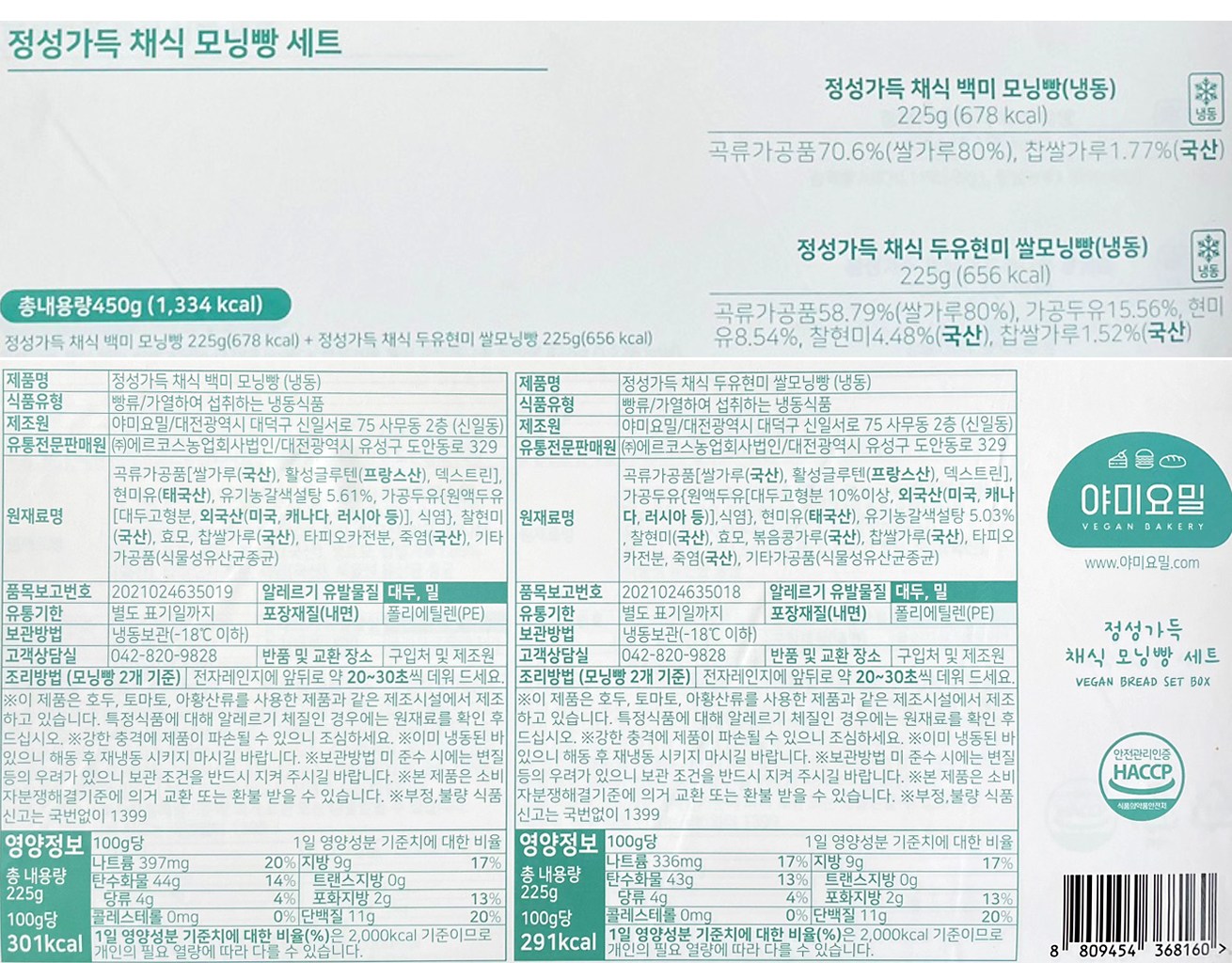 - 구성품: 모닝빵 225g + 쌀모닝빵 225g