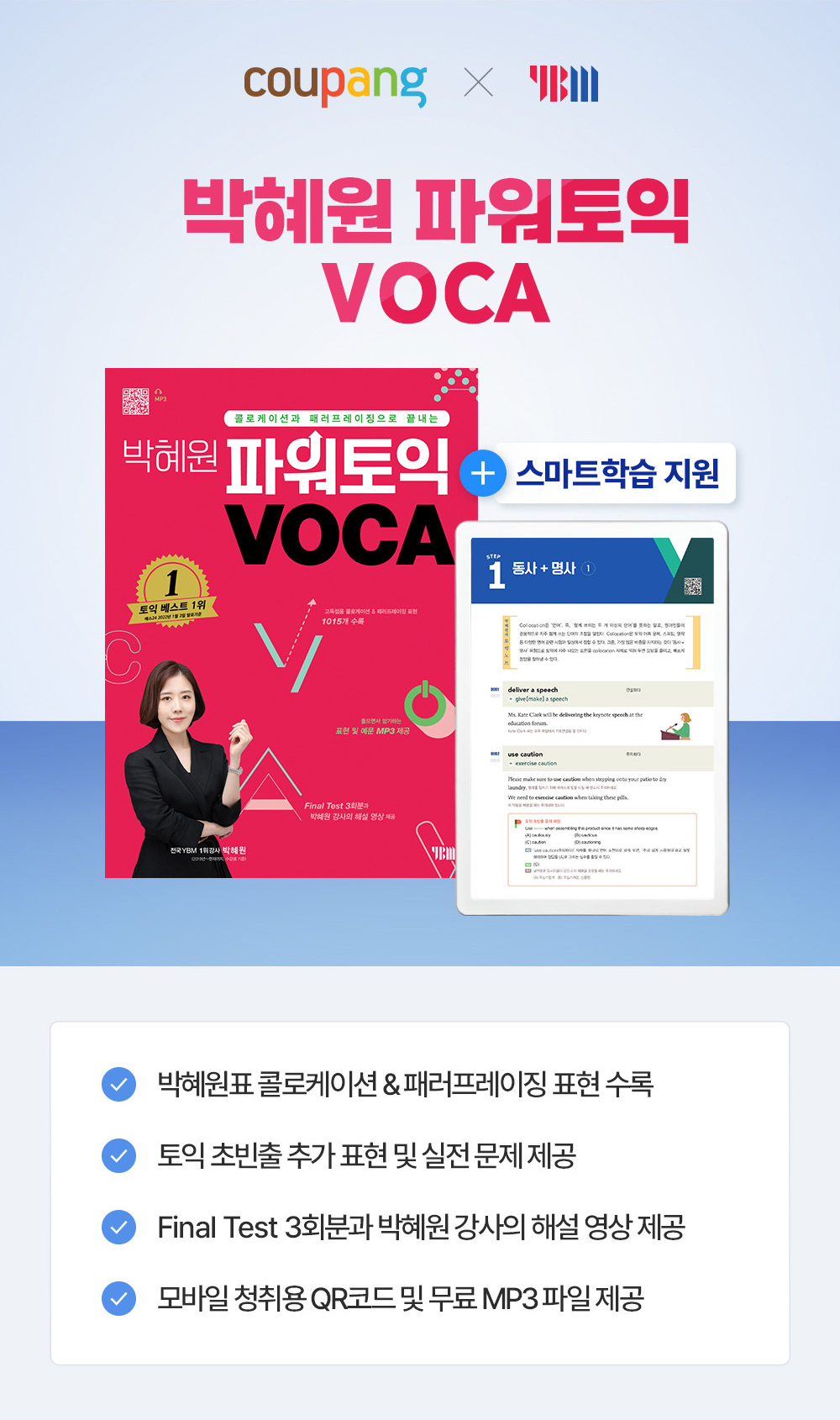 | 도서명 | 토익 온오프 박혜원 파워토익 VOCA | 저자, 출판사 | 박혜원, YBM |