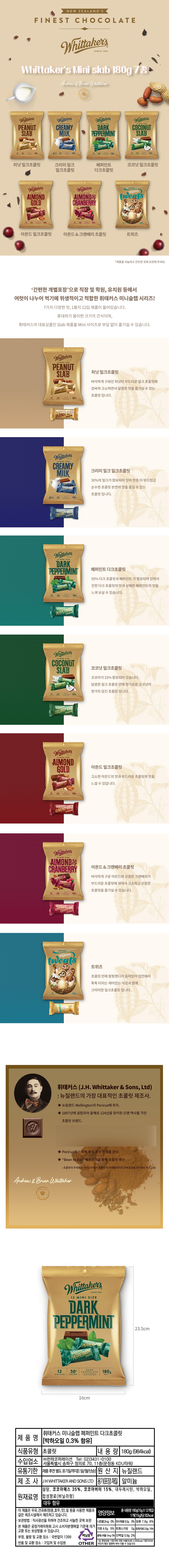 | 제품명 | 휘태커스 미니 슬랩 페퍼민트 다크 초콜릿 | 식품의 유형 | 컨텐츠 참조 |