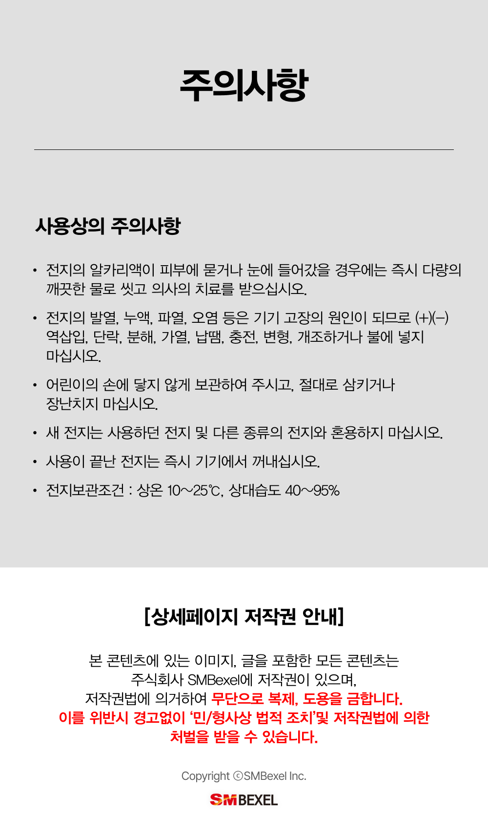 | 제조국(원산지) | 중국 | 제조자(수입자) | Zhejiang Yonggao Battery Co.,Ltd. / (주)벡셀 |