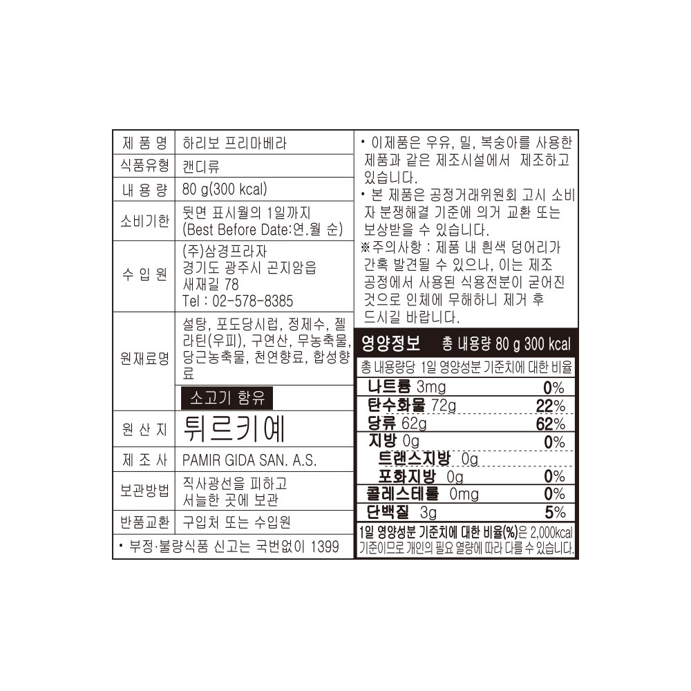 | 생산자 및 소재지 | 컨텐츠 참조 | 제조연월일, 소비기한 또는 품질유지기한 | 소비기한(또는 유통기한) : 2026년 05월 01일 이거나 그 이후인 상품<br />제조년월일 : 1945년 08월 15일 이후인 제조상품 |