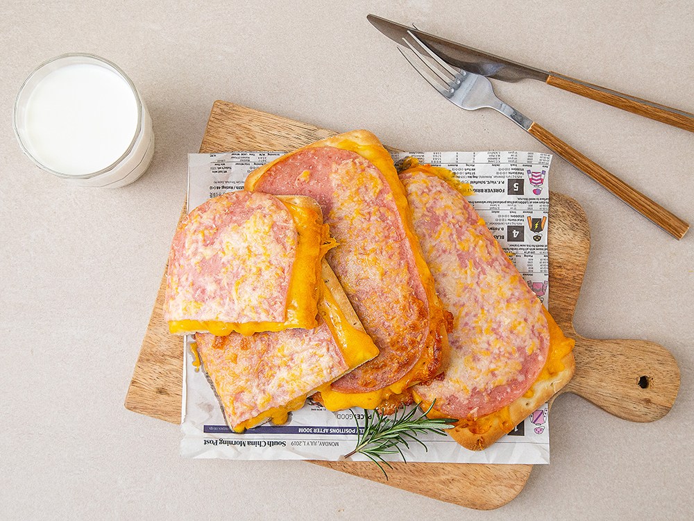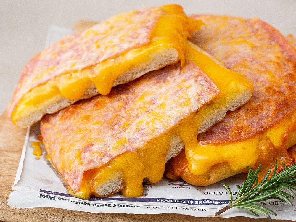 담백한 빵에 고소한 스모크햄과 다채로운 치즈 등을 올린 크로크무슈예요. 풍성한 식감은 물론이고 치즈의 진한 풍미까지 느낄 수 있는 별미랍니다. 전자레인지 등으로 손쉽게 조리해서 즐겨보세요.