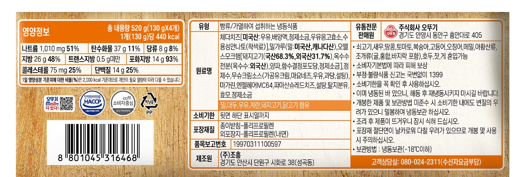 | 제품명 | REAL 프렌치크로크무슈 오리지널 | 식품의 유형 | 컨텐츠 참조 |