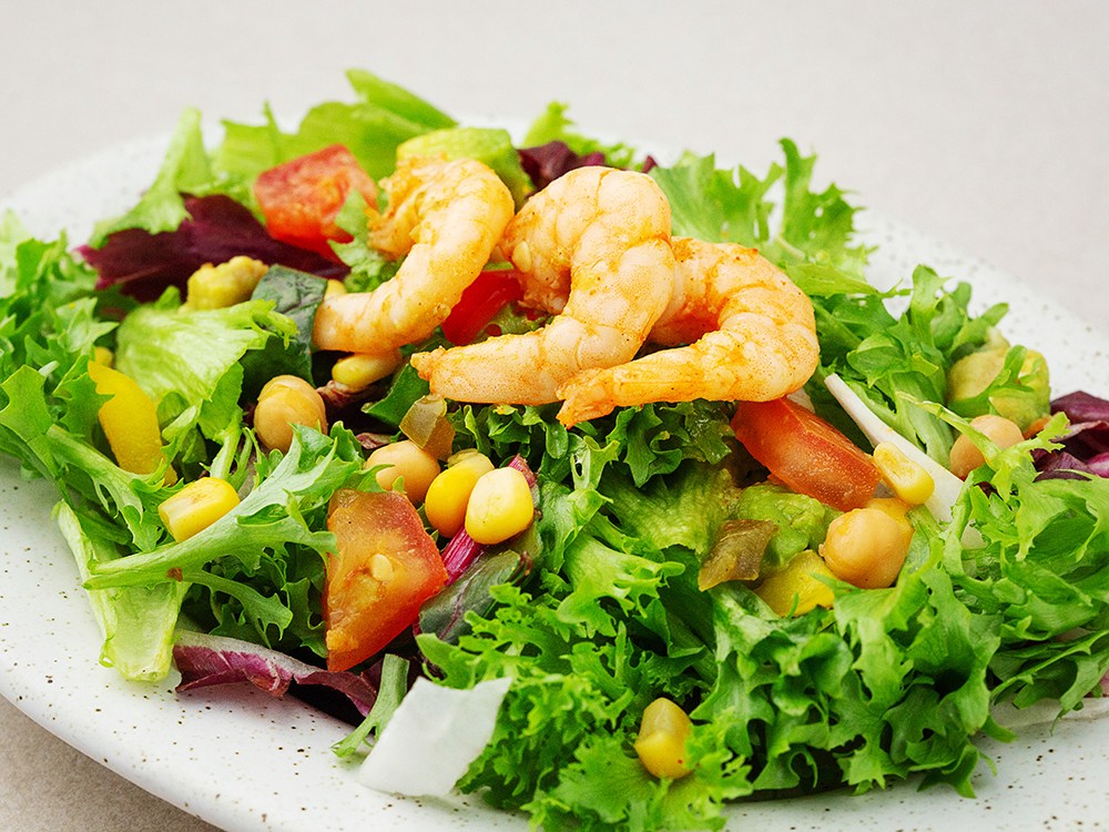 컵에 담겨 간편하게 즐길 수 있는 샐러드예요. 탱글탱글한 흰다리살새우가 톡톡 씹힌답니다. 샐러드 한 컵으로 산뜻하고 청량한 하루를 시작해보세요. 아삭아삭하고 신선한 채소가 시원한 기분을 선사할 거예요.
