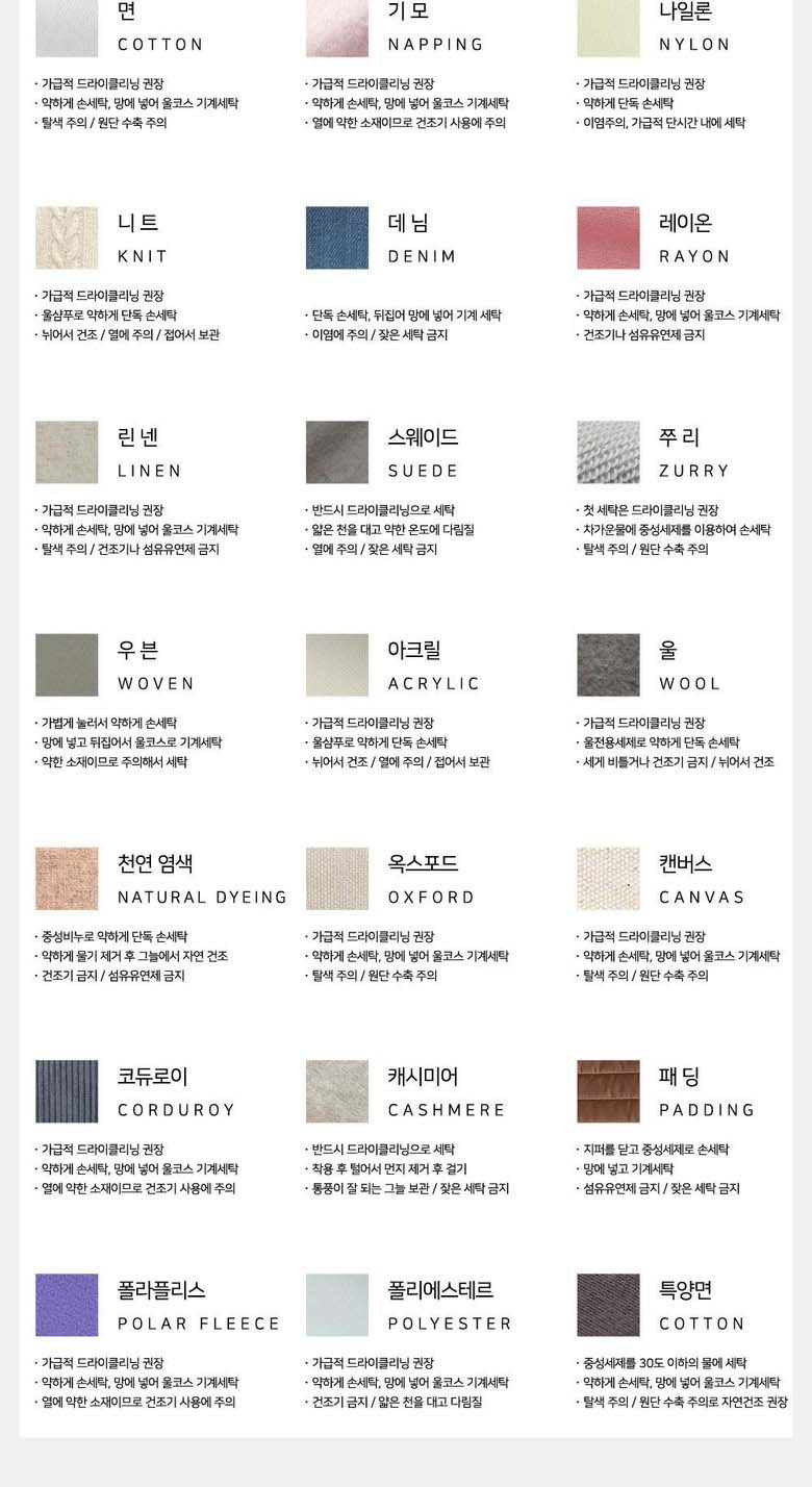 | 제조국 | 중국 OEM | 세탁방법 및 취급시 주의사항 | 컨텐츠참조 |