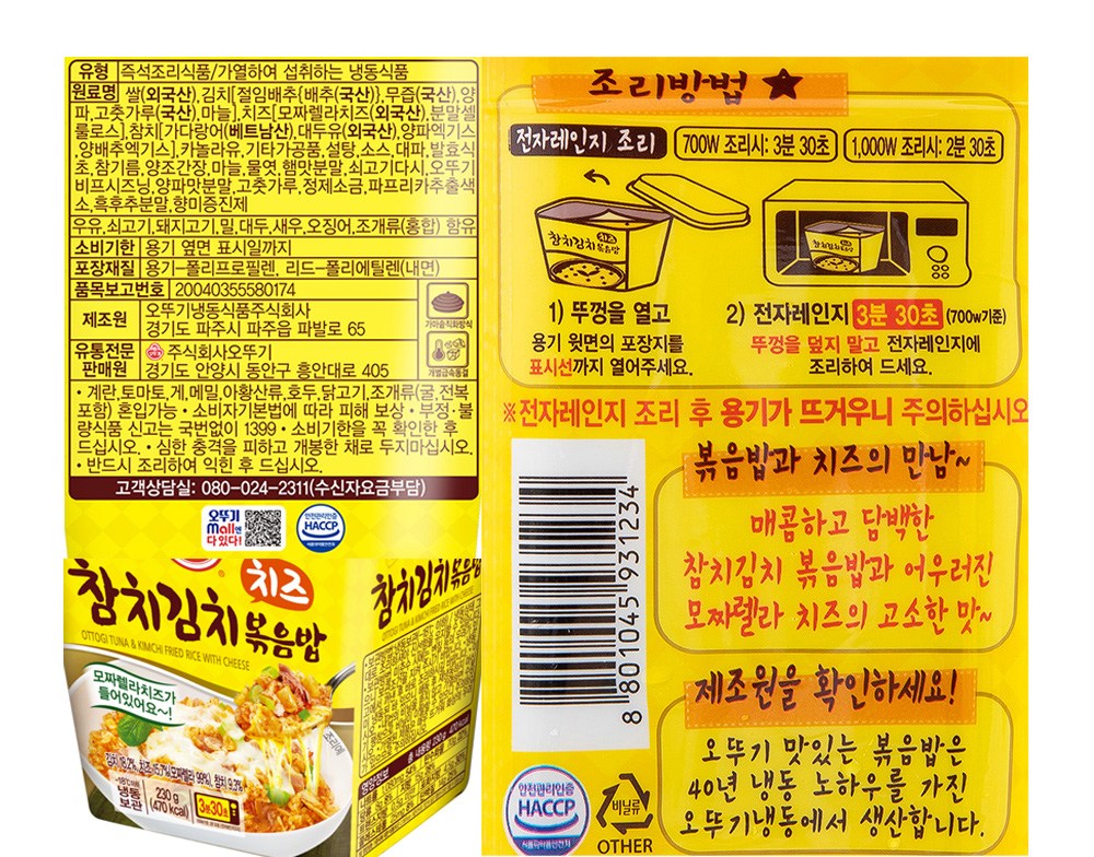 | 제품명 | 참치김치치즈볶음밥(용기) | 식품의 유형 | 컨텐츠 참조 |