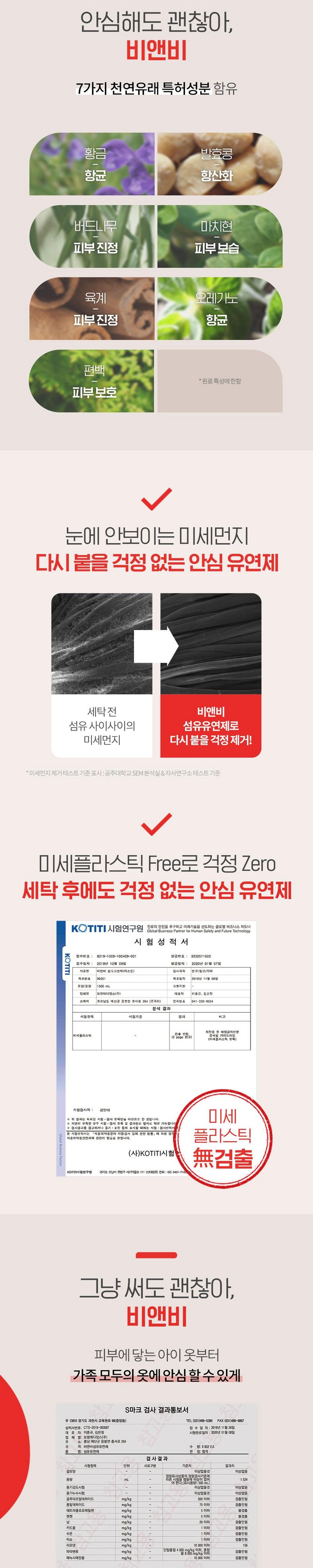 | 제조연월 및 유통기한 (유통기한의 경우 해당 없는 제품은 생략 가능) | 50 ~ 3000 mL | 중량∙용량∙매수∙크기 | 1.옷감의 부드러움 2.정전기방지 3.냄새제거 및 탈취 4.항균,살균효과 5.주름방지 및 색상 보호 |