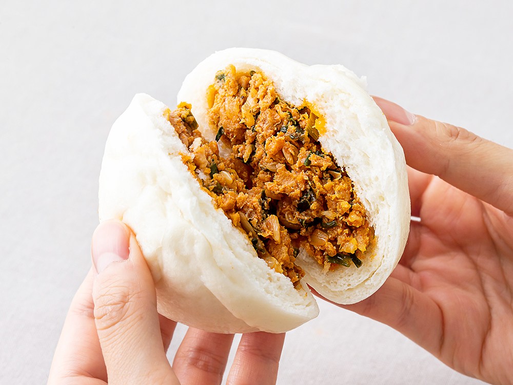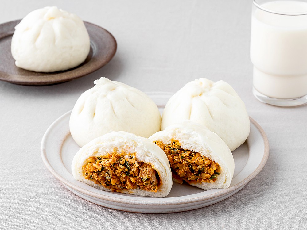 칼칼한 감칠맛으로 입맛을 사로잡는 찐빵이에요. 보들보들한 빵 속에 돼지고기와 양파, 양배추 등을 넣어 풍성한 식감을 선사한답니다. 간편하게 조리해서 온 가족 간식으로 즐겨보세요.