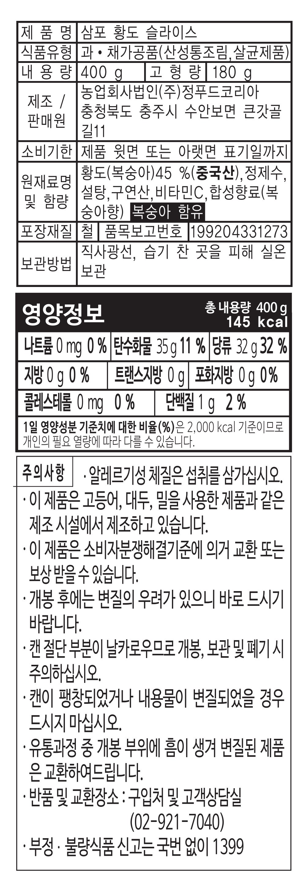 | 포장단위별 내용물의 용량(중량), 수량 | 400g*24개 | 원재료명 및 함량 | 컨텐츠 참조 |