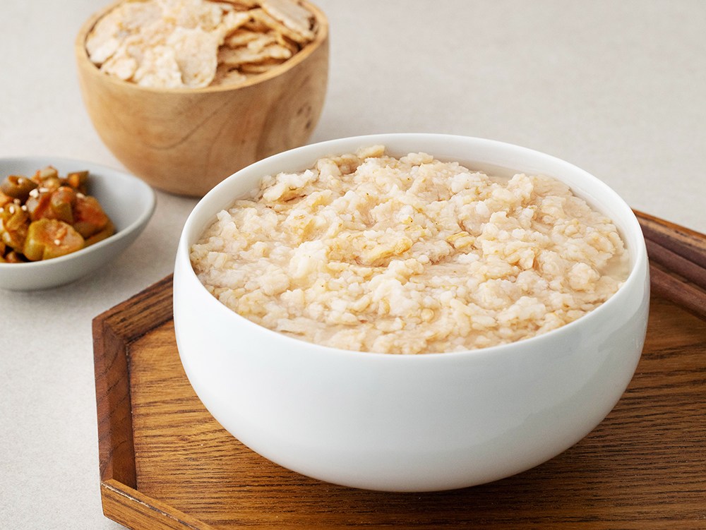 누룽지에 뜨거운 물을 붓고 잠시 기다리면 맛있는 누룽지탕이 완성됩니다. 꼬들꼬들한 식감을 원하시면 3분, 부드러운 식감을 원하시면 5분간 불려서 드세요.