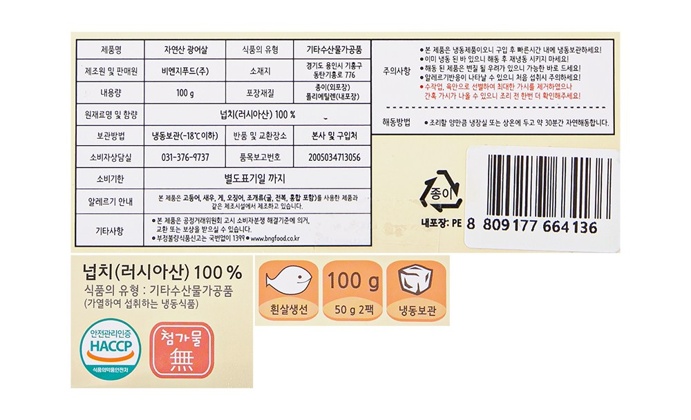 수작업으로 최대한 가시를 제거하였으나, 간혹 가시가 나올 수 있으니 조리 전 한 번 더 확인해주세요.