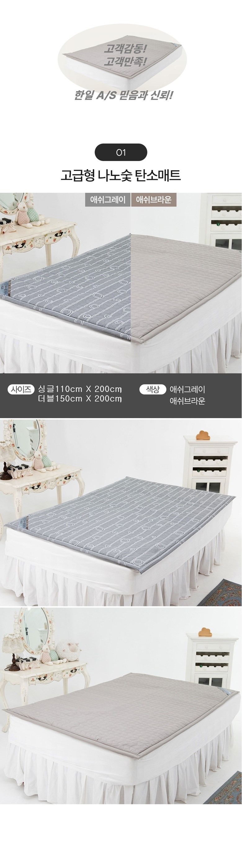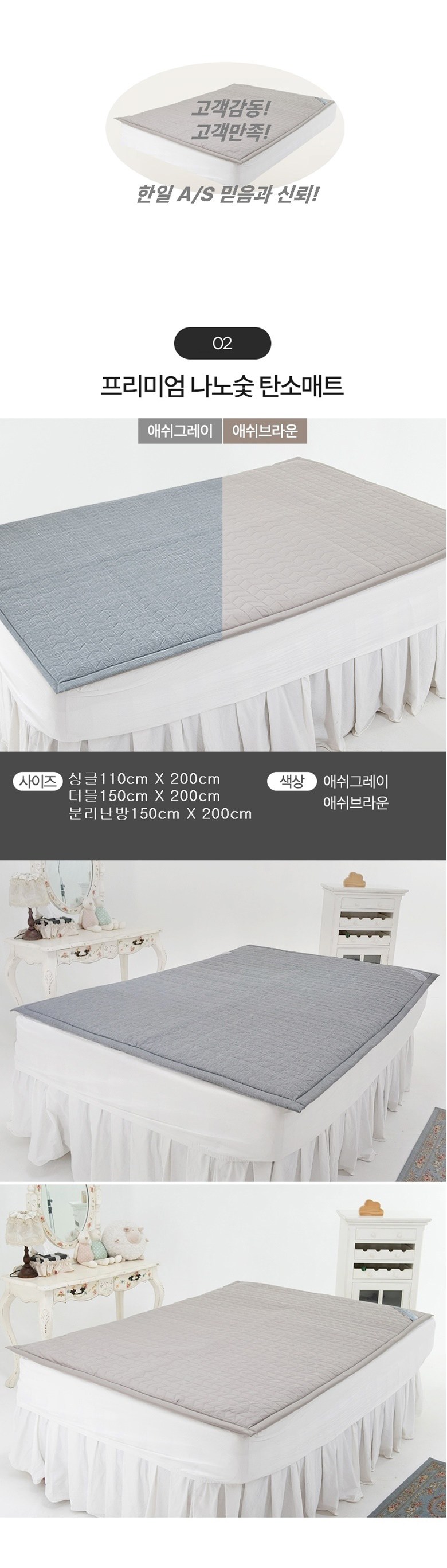 한일 침대용 프리미엄 나노숯 탄소매트 애쉬브라운