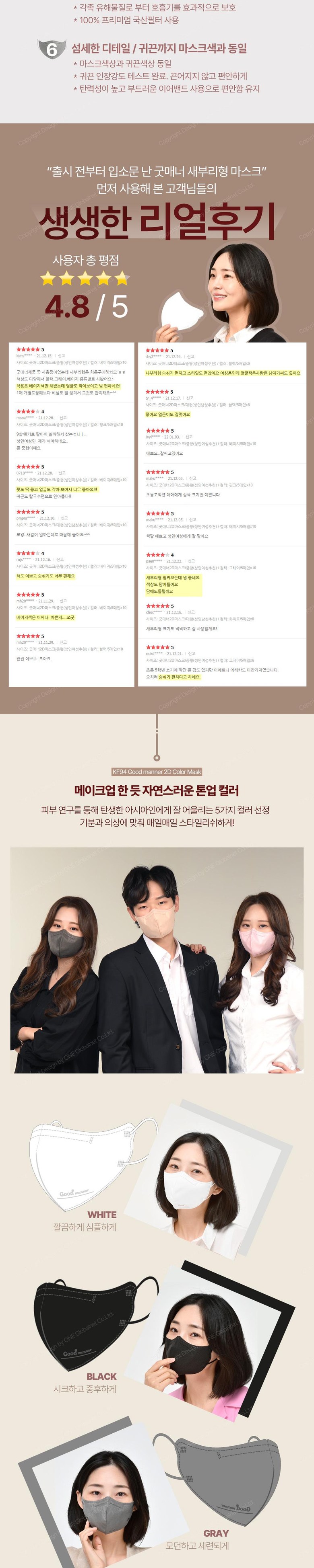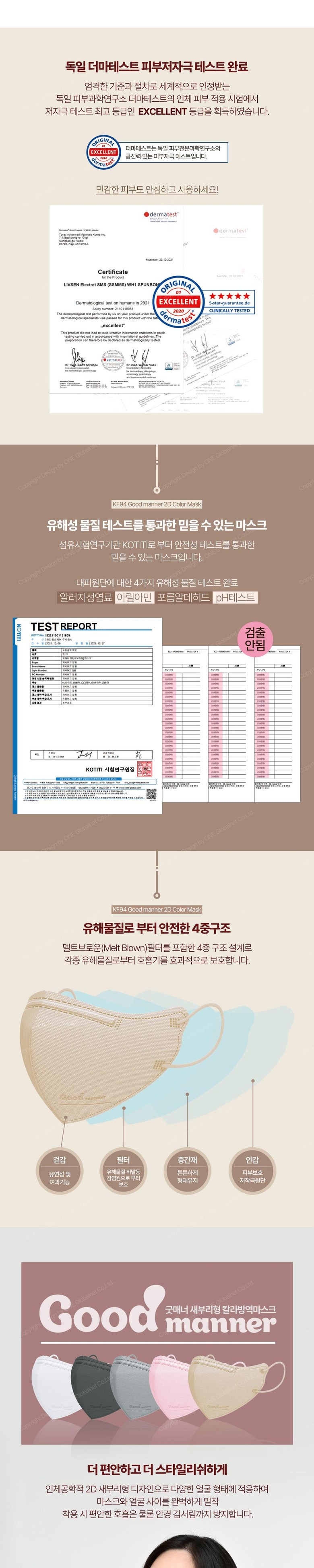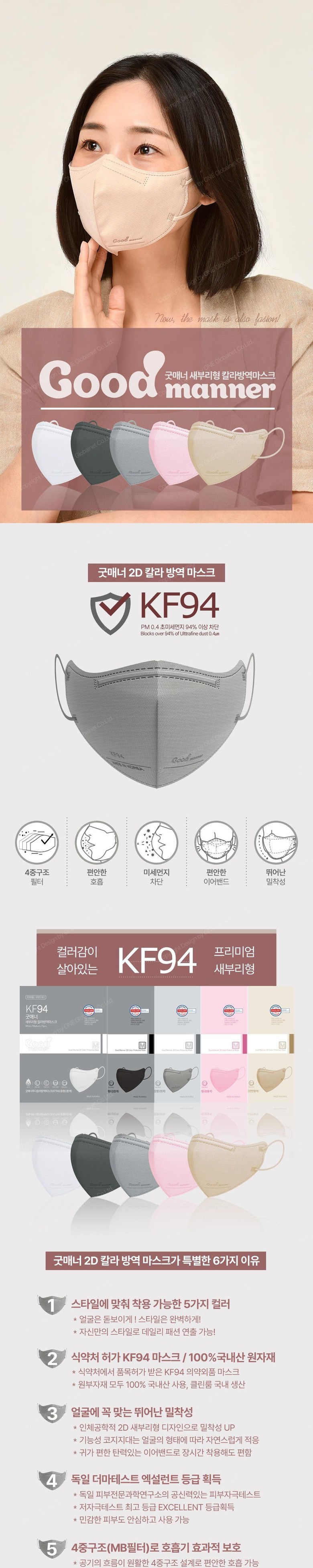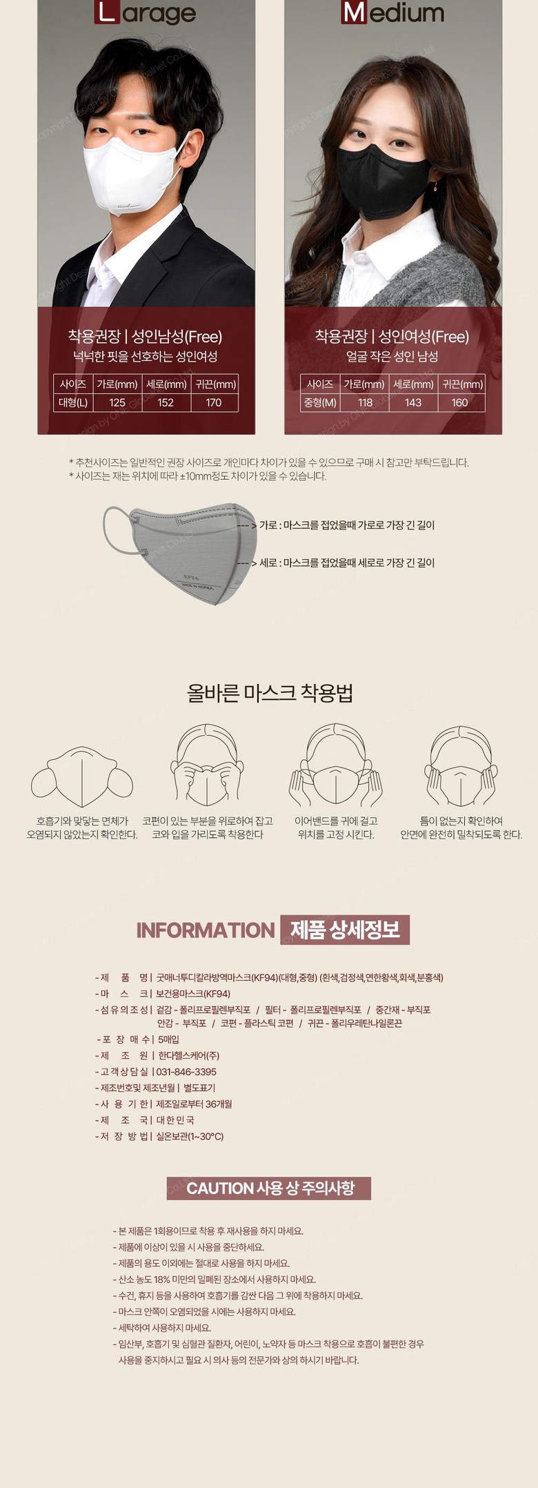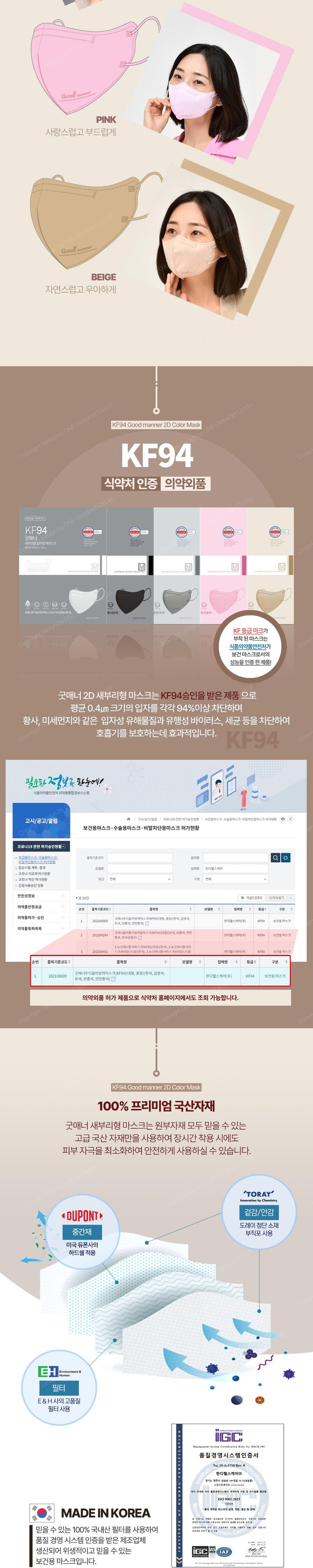 | 품명 및 모델명 | 굿매너투디칼라방역마스크(KF94)(대형) | 인증/허가 사항 | 의약외품 |