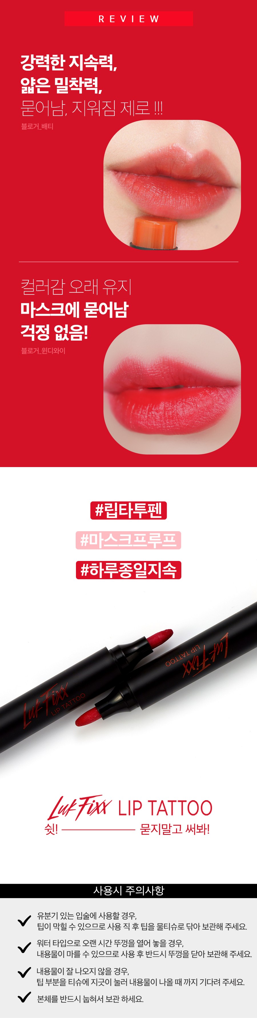 - 립메이크업 제형: 리퀴드/잉크
