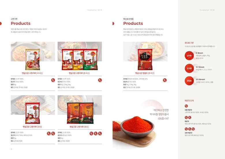 | 포장단위별 내용물의 용량(중량), 수량 | 포장단위별 용량(중량):1kg, 2.5kg, 5kg / 포장단위별 수량:재고많음 | 원재료명 및 함량 | 원재료명:혼합조미료80%[고추96%(중국산),대파1%,양파2%,정제염1%],고추씨분말20%(중국산) |