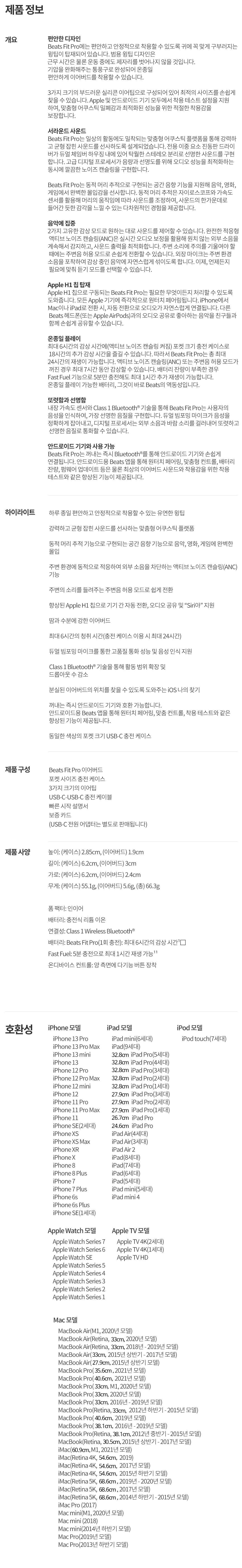 | 품명 및 모델명 | Apple Beats Fit Pro 무선 이어버드 | KC 인증정보 | R-C-APL-A2576 |