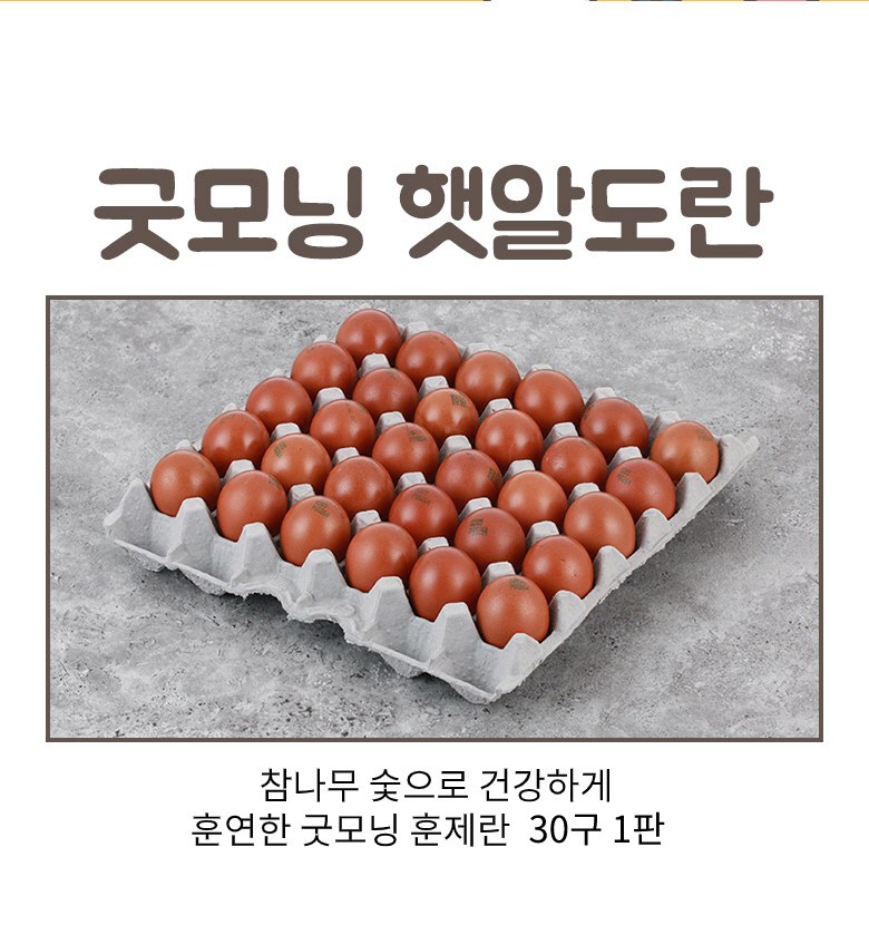 | 품목 또는 명칭 | 알가열제품 | 포장단위별 내용물의 용량(중량),수량,크기 | 1판 (1050g이상), 30구 |