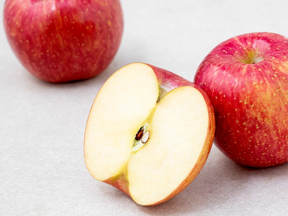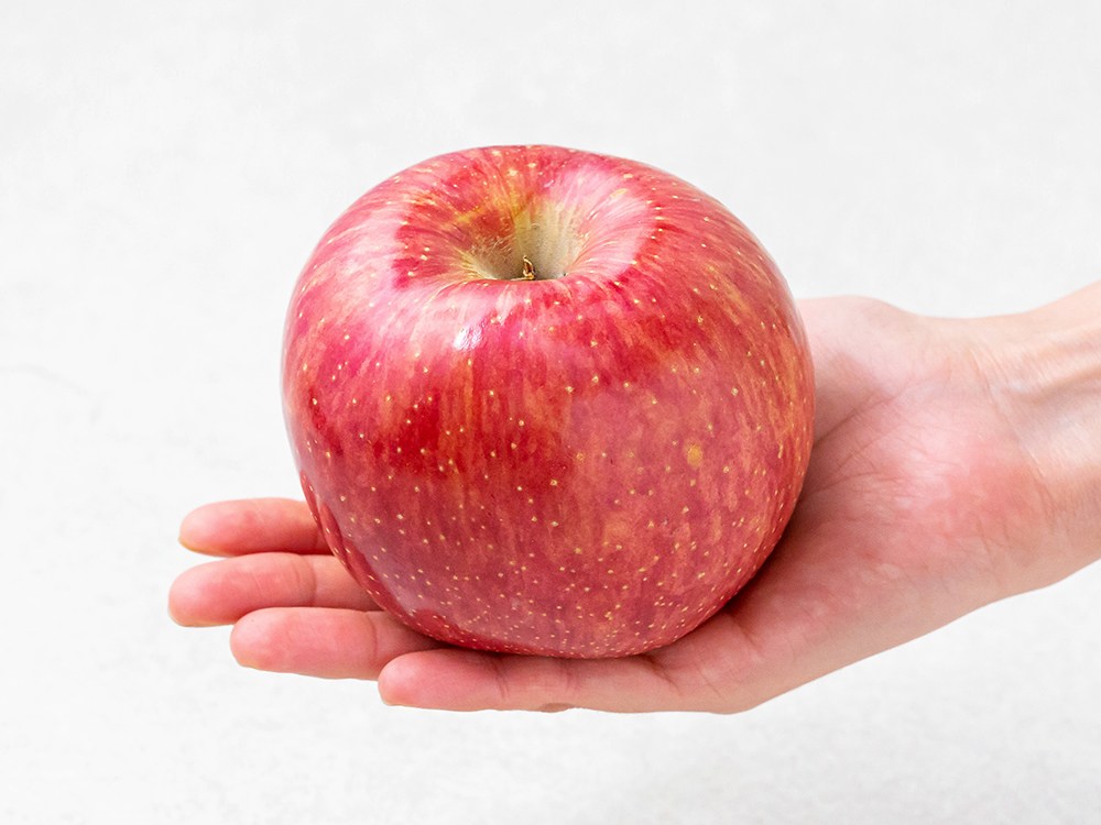 달콤하고 청량한 과즙을 풍부하게 품은 사과예요. 새빨갛게 잘 익어 탐스럽고 먹음직스러운 모양새를 자랑하지요. 아삭아삭한 과육을 베어 물면 입안 가득 달달하게 퍼지는 향미가 기분까지 상큼하게 만들어줄 거예요.