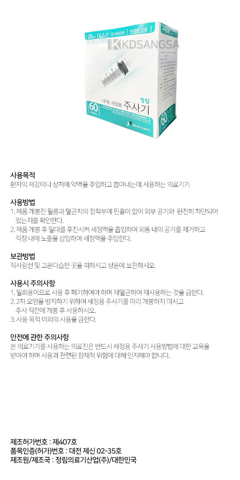 정림의료기산업 일회용 세정용 주사기 60ml, 40개
