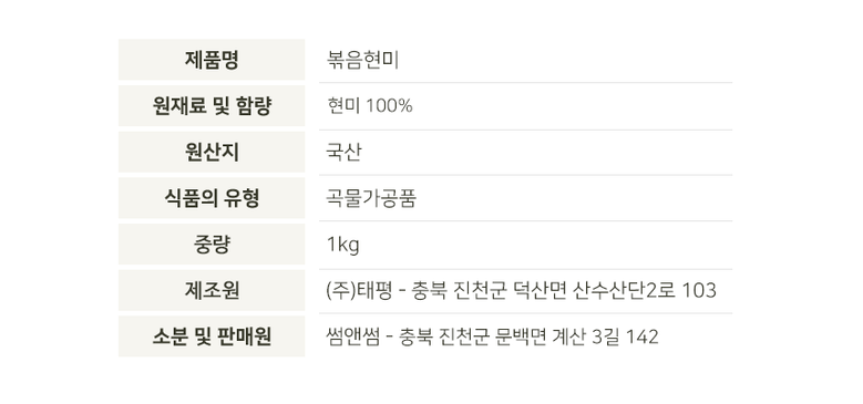 | 제조연월일, 소비기한 또는 품질유지기한 | 상품 상세페이지 참조 | 세부 품목군별 표시사항 | 상품 상세페이지 참조 |