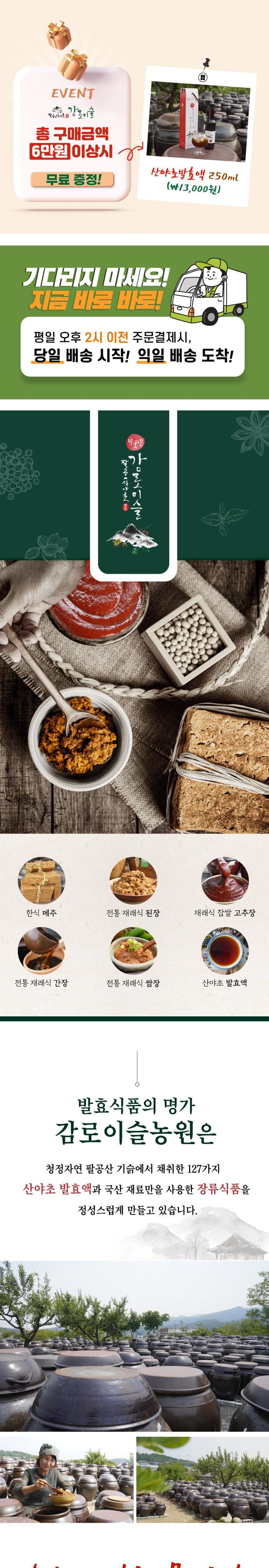 | 제품명 | 상품 상세페이지 참조 | 식품의 유형 | 재래식 고추장 |