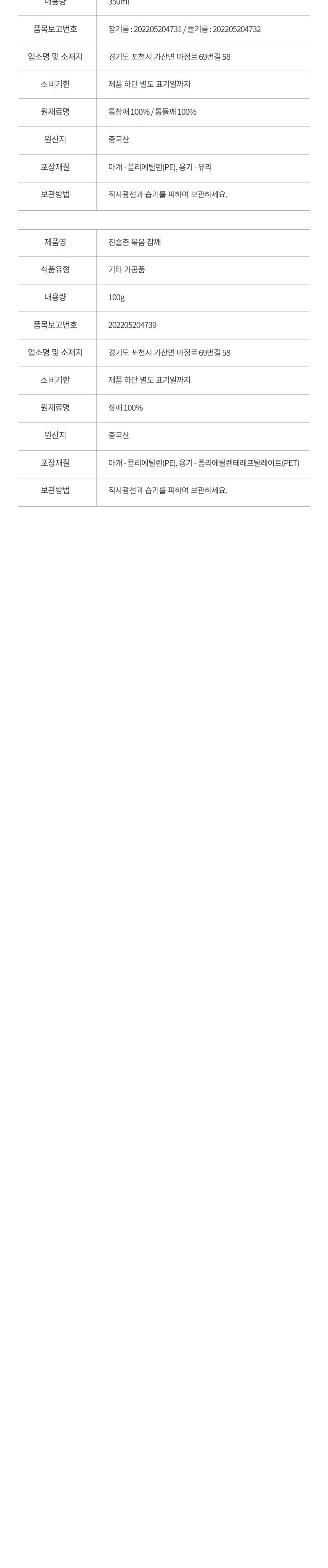 | 제조연월일, 소비기한 또는 품질유지기한 | 상품 상세페이지 참조 | 세부 품목군별 표시사항 | 상품 상세페이지 참조 |