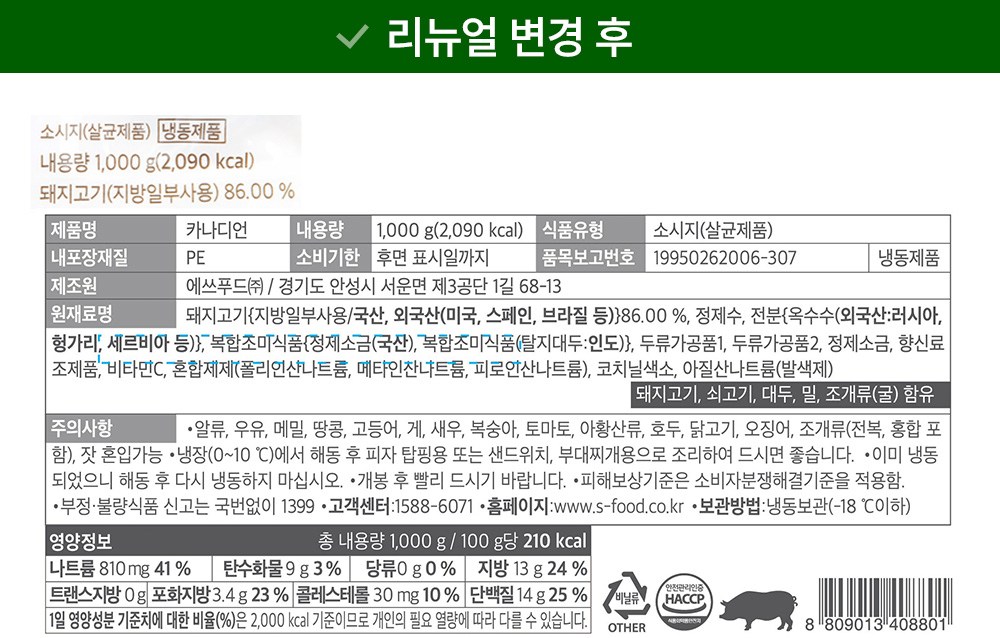 | 제품명 | 카나디언 | 식품의 유형 | 컨텐츠참조 |