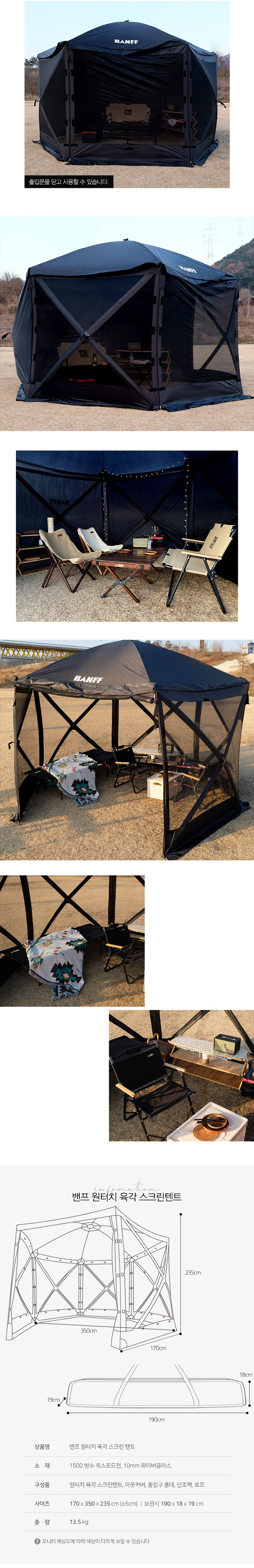 | 품명 및 모델명 | 밴프 원터치 육각 스크린 텐트 + 아우터커버 | KC 인증정보 | 업체미제공 |