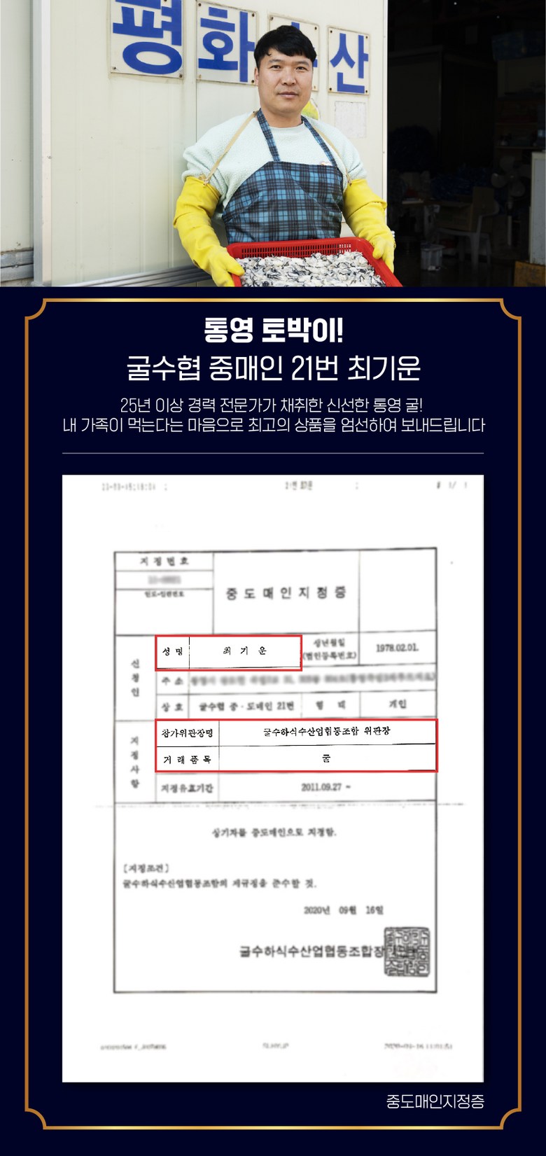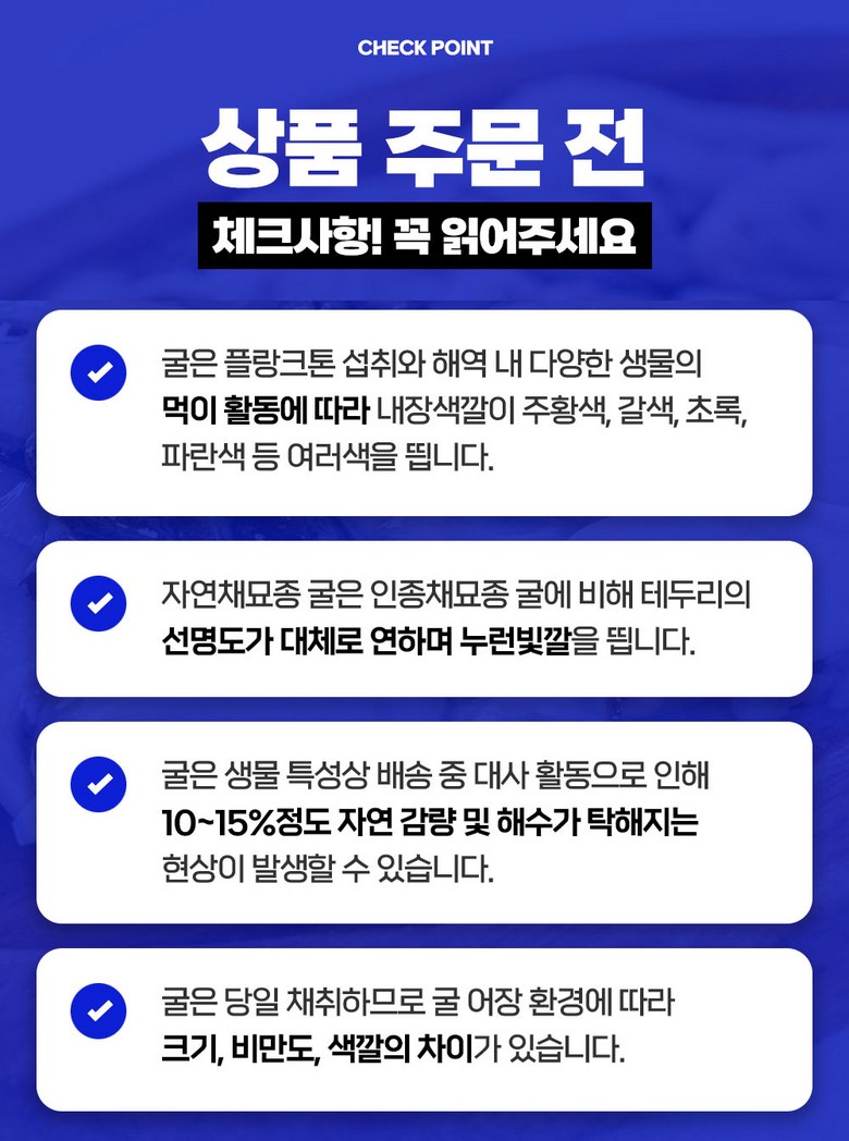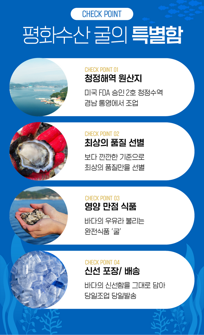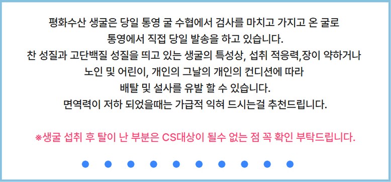 | 생산자(수입자) | 평화수산 (굴수협지정중매인) | 원산지 | 경상남도 통영 |