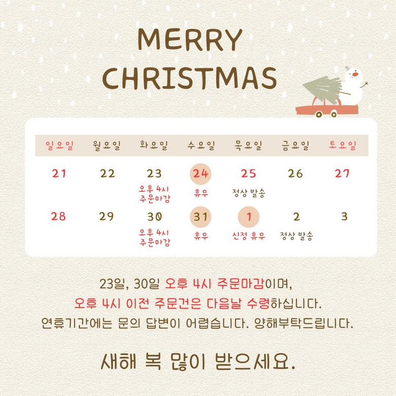 - ㆍ모니터 해상도의 차이로 인해 색상이나 이미지가 실제와 달라, 고객이 단순 변심으로 교환/반품을 무료로 요청하는 경우