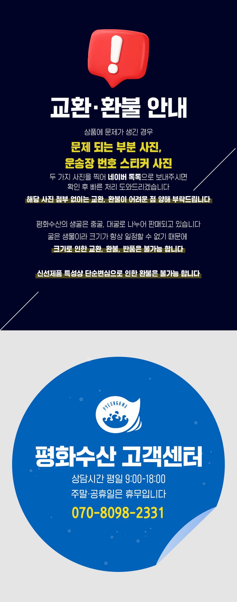 - ㆍ교환/반품에 관한 일반적인 사항은 판매자가 제시사항보다 관계법령이 우선합니다.