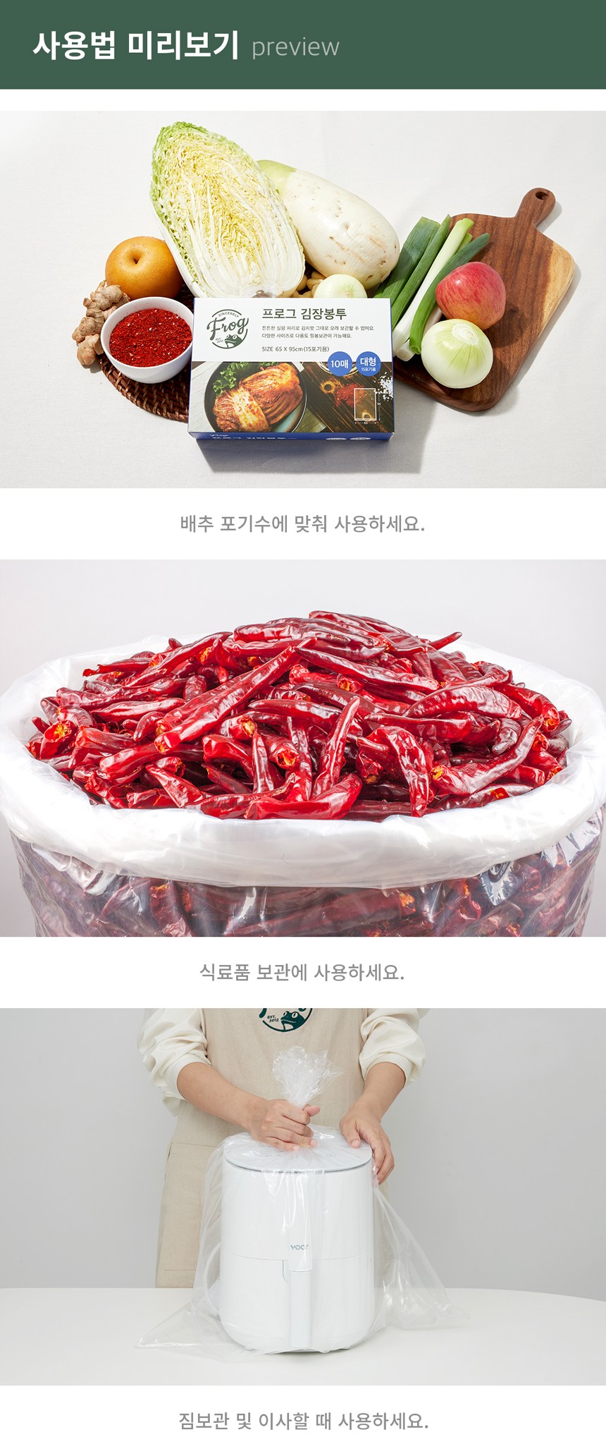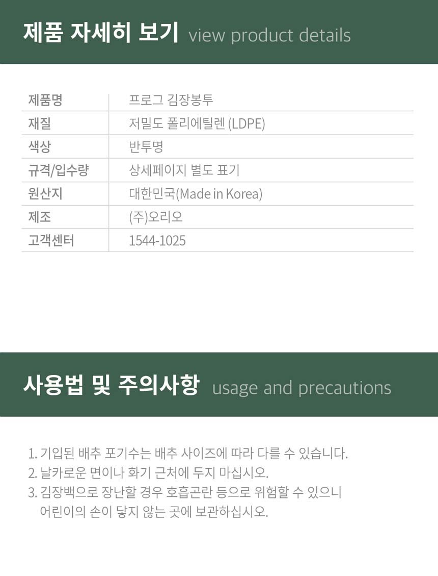 | 품명 및 모델명 | 프로그 김장봉투 대형 (15포기용) | 재질 | LDPE |
