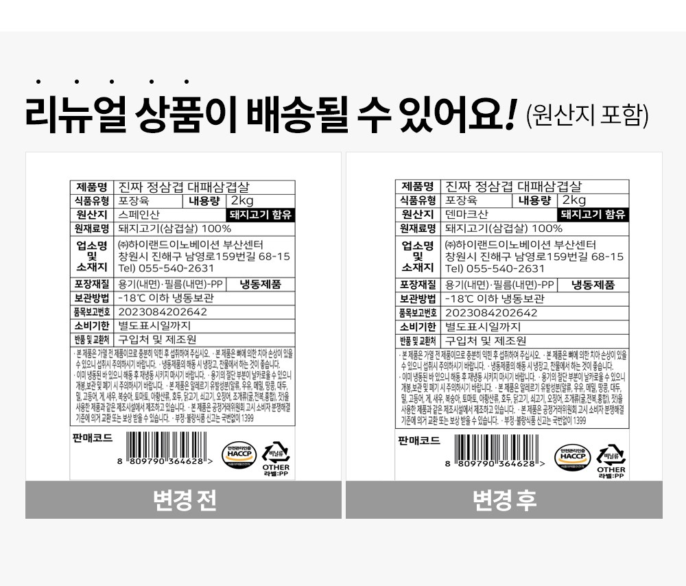 | 제조연월일, 소비기한 또는 품질유지기한 | 소비기한(또는 유통기한) : 2026년 12월 14일 이거나 그 이후인 상품 제조년월일 : 2025년 12월 15일 이후인 제조상품 | 세부 품목군별 표시사항 | 축산물 등급표시 : 해당 없음 / 이력번호 표시유무 : 이력번호 표시제품임 |