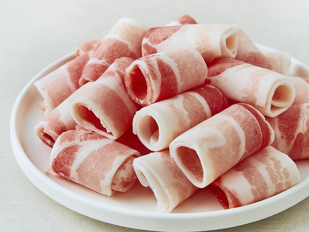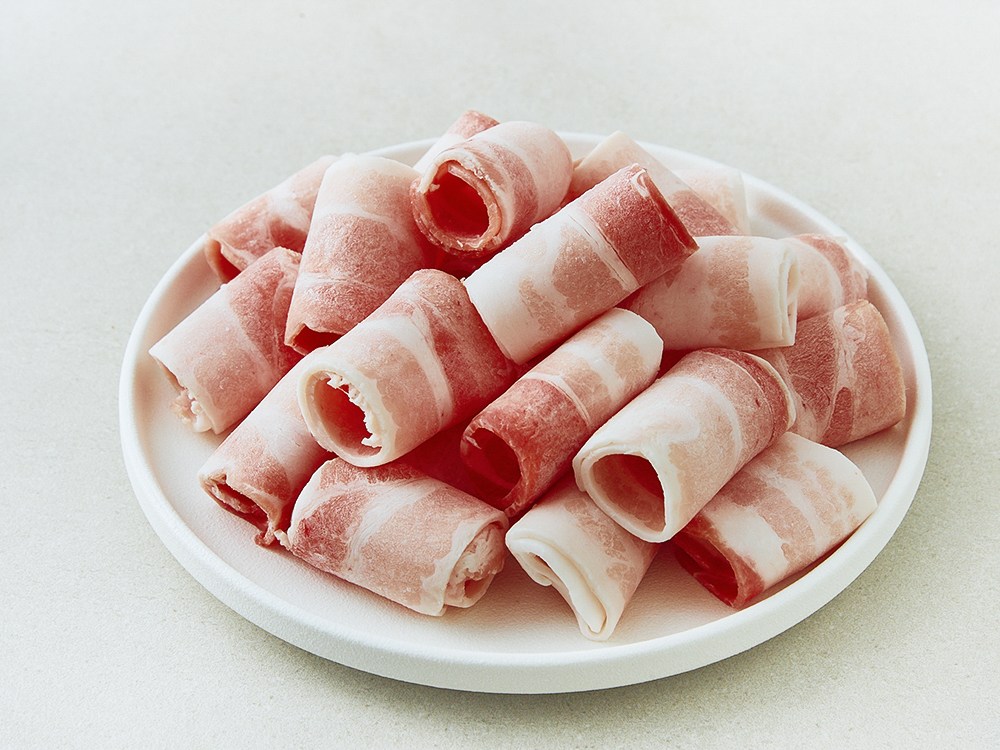 얇게 정형한 돼지 삼겹살