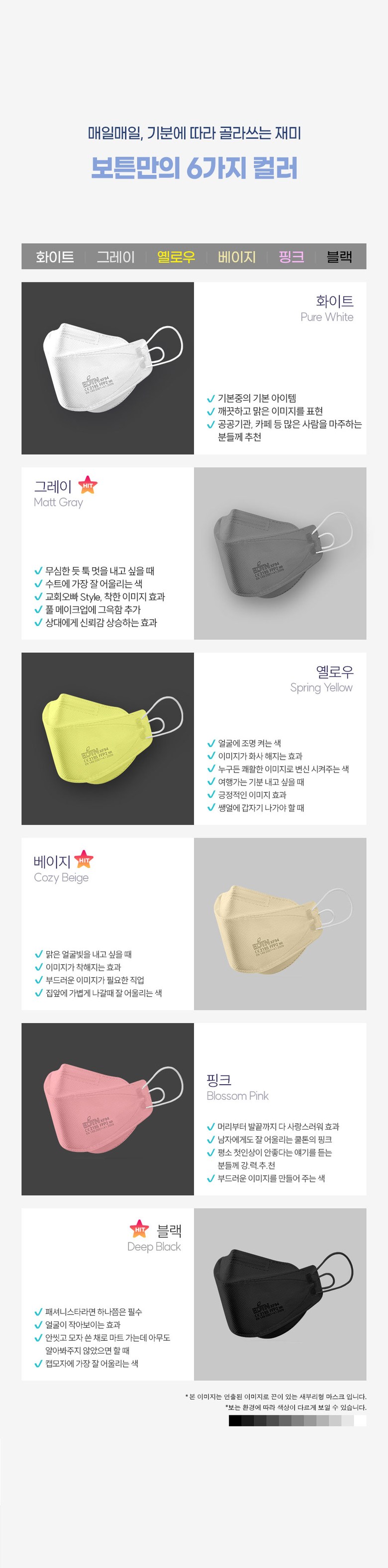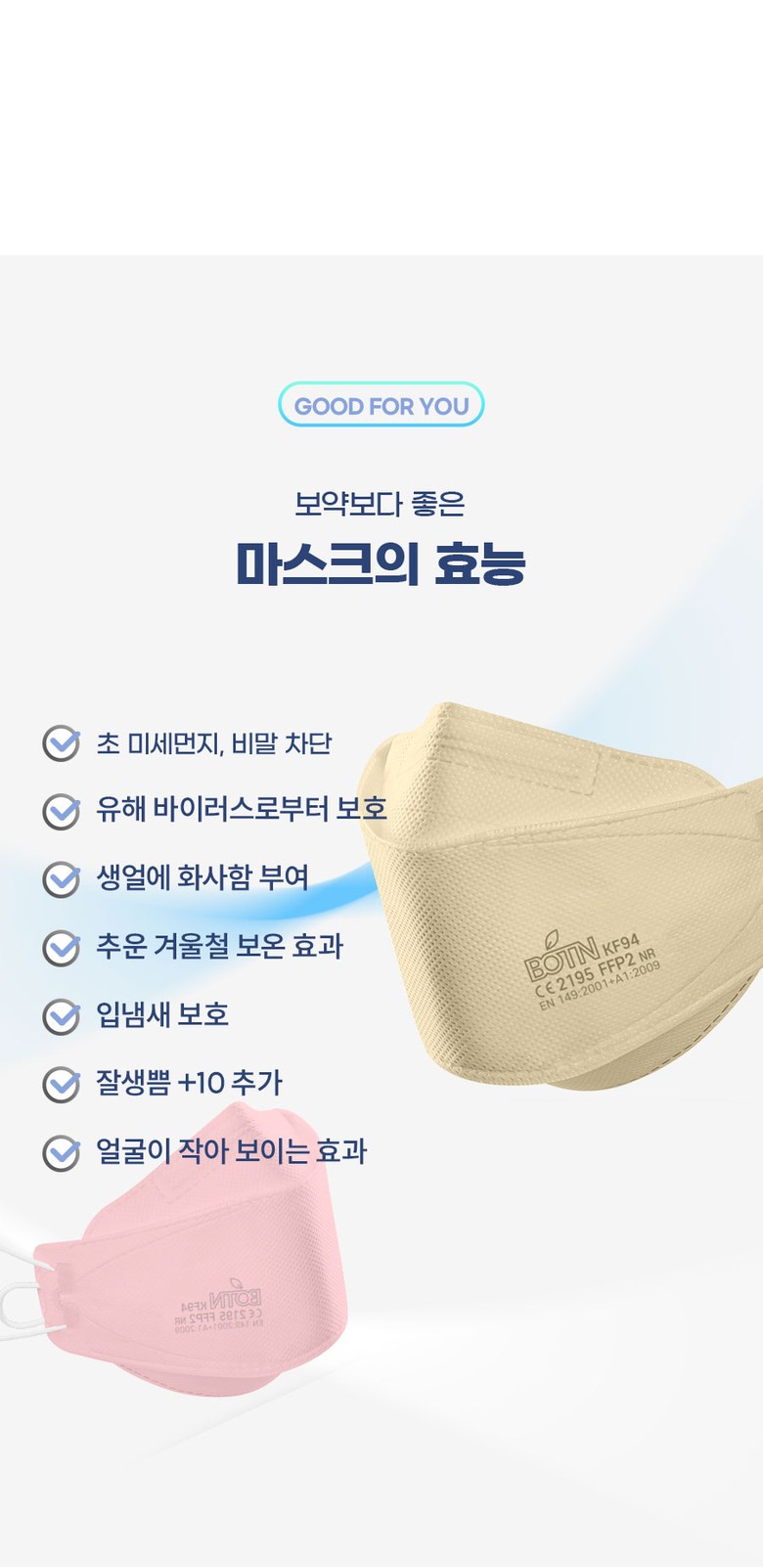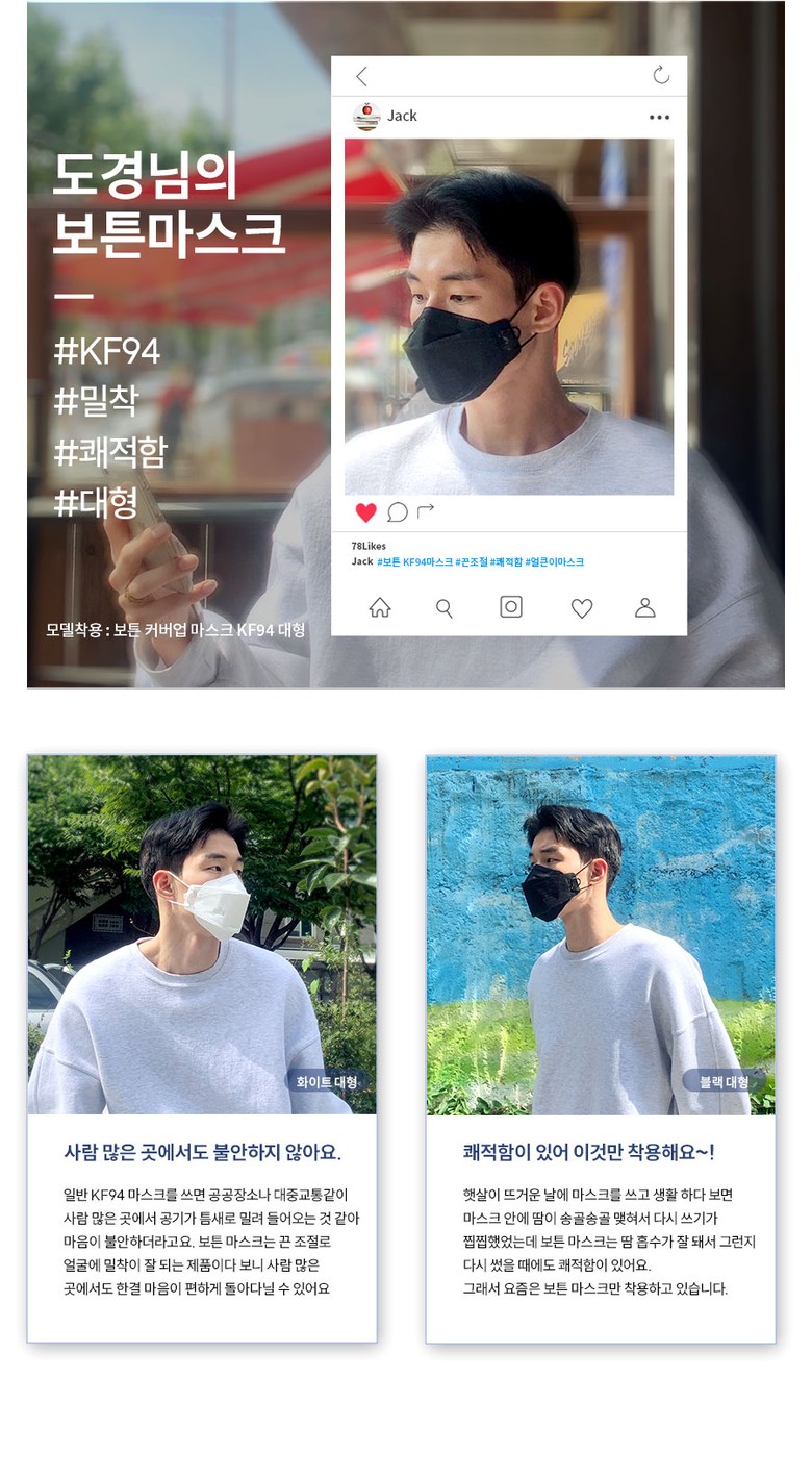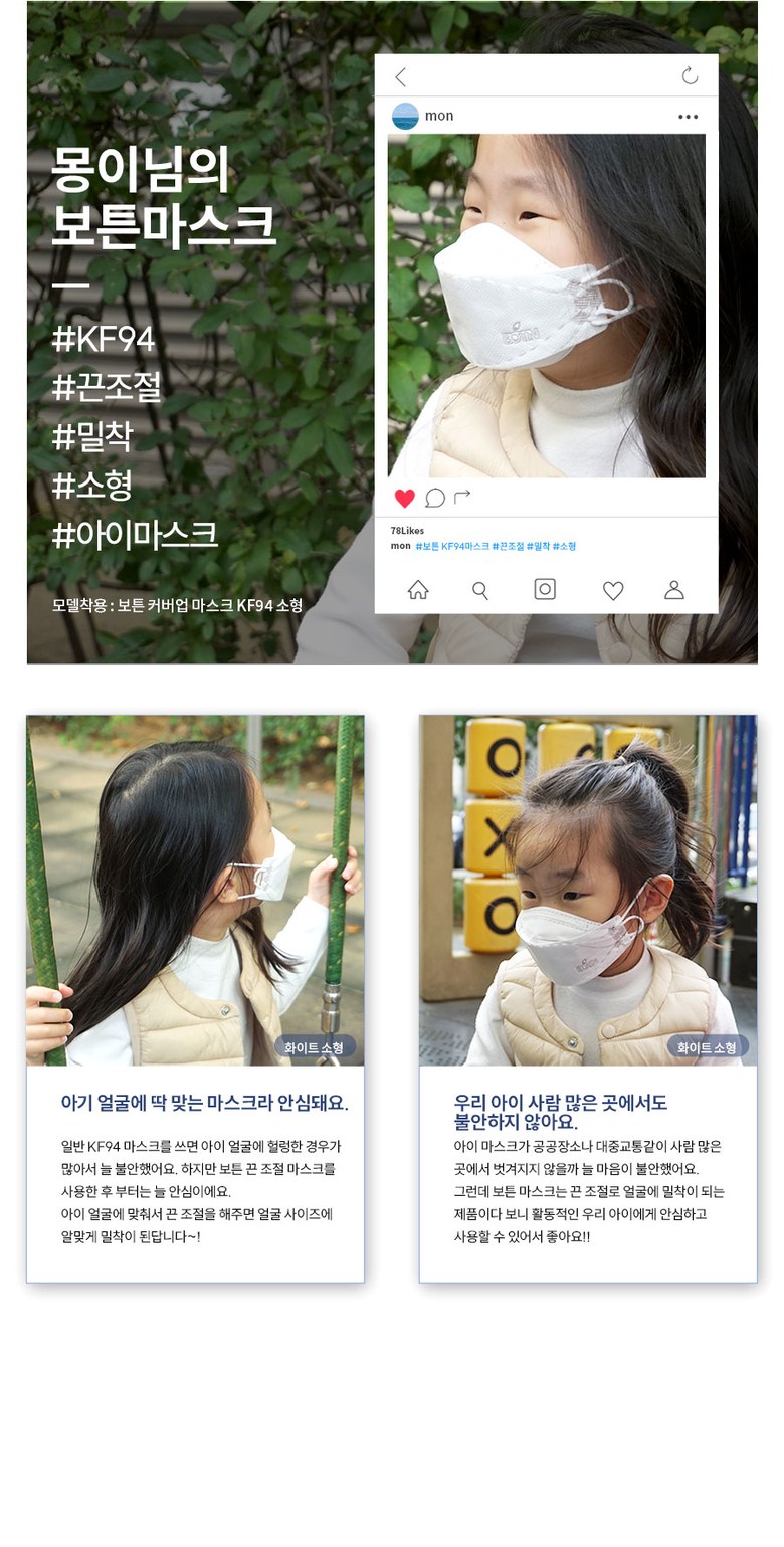 | 품명 및 모델명 | BOTN 보튼 KF94 황사 마스크 | 인증/허가 사항 | 의약외품 KF94 |