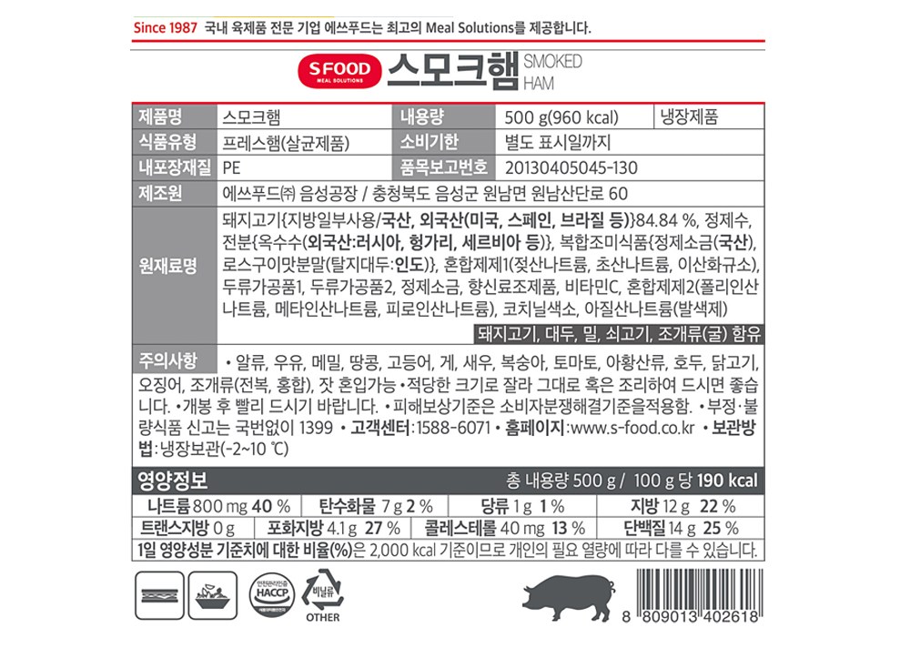 부드러운 풍미가 좋은 스모크햄이에요. 입안 가득 퍼지는 고소하고 짭조름한 감칠맛이 일품이죠. 쫄깃쫄깃한 식감이 좋아 어느 식재료와도 잘 어우러진답니다. 조리할 필요 없이 그냥 드셔도 좋고, 피자 위에 올려 노릇하게 요리하셔도 좋아요.