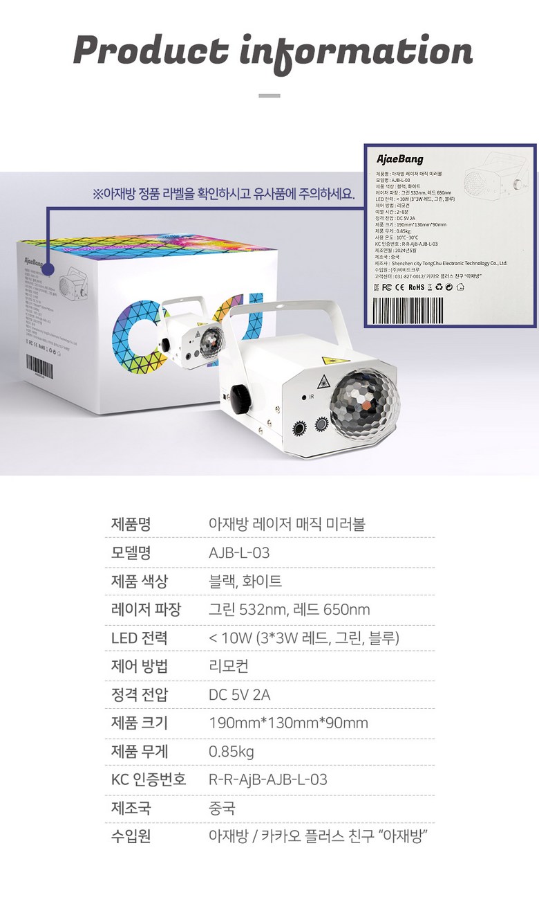 | 품명 및 모델명 | 상품 상세페이지 참조 | KC 인증정보 | 상품 상세페이지 참조 |