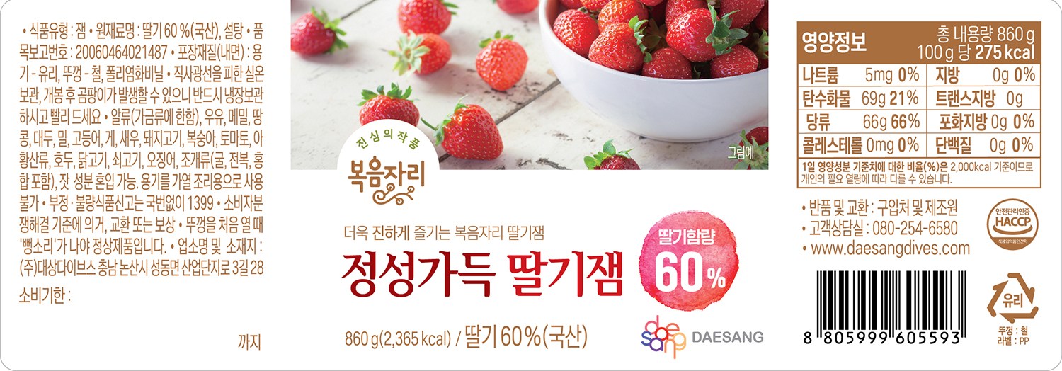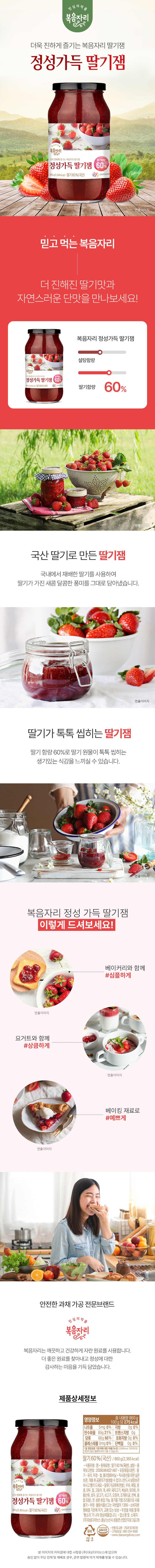 | 제품명 | 복음자리 정성가득 딸기잼 60% | 식품의 유형 | 컨텐츠 참조 |